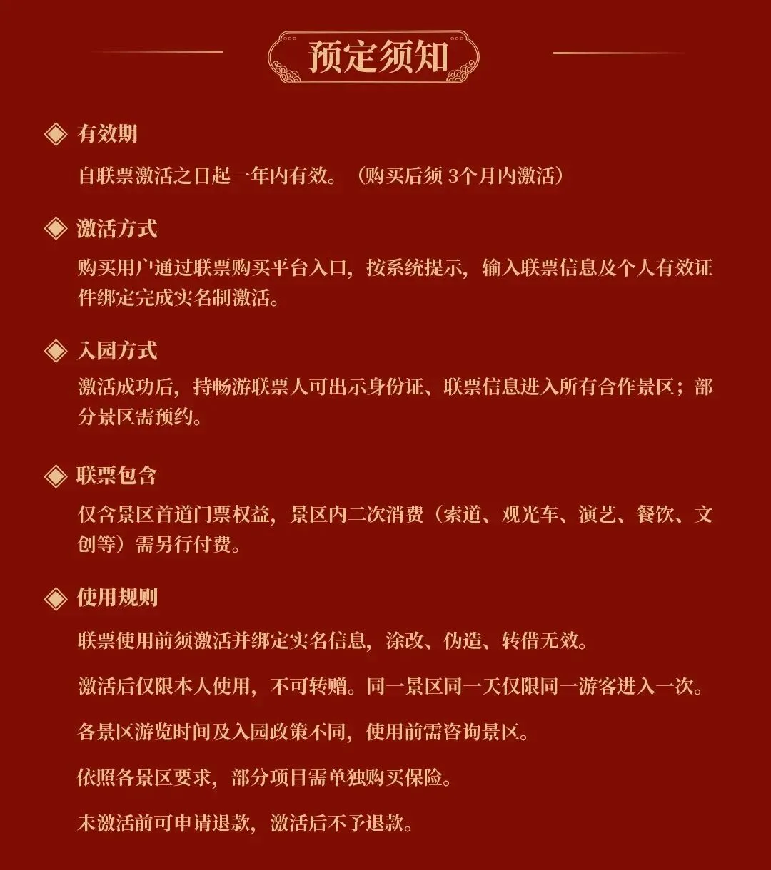 ✅重要提醒:联票自激活之日起一年内有效,购买后须在3个月内激活 。联票激活后仅限本人使用,不可转借。