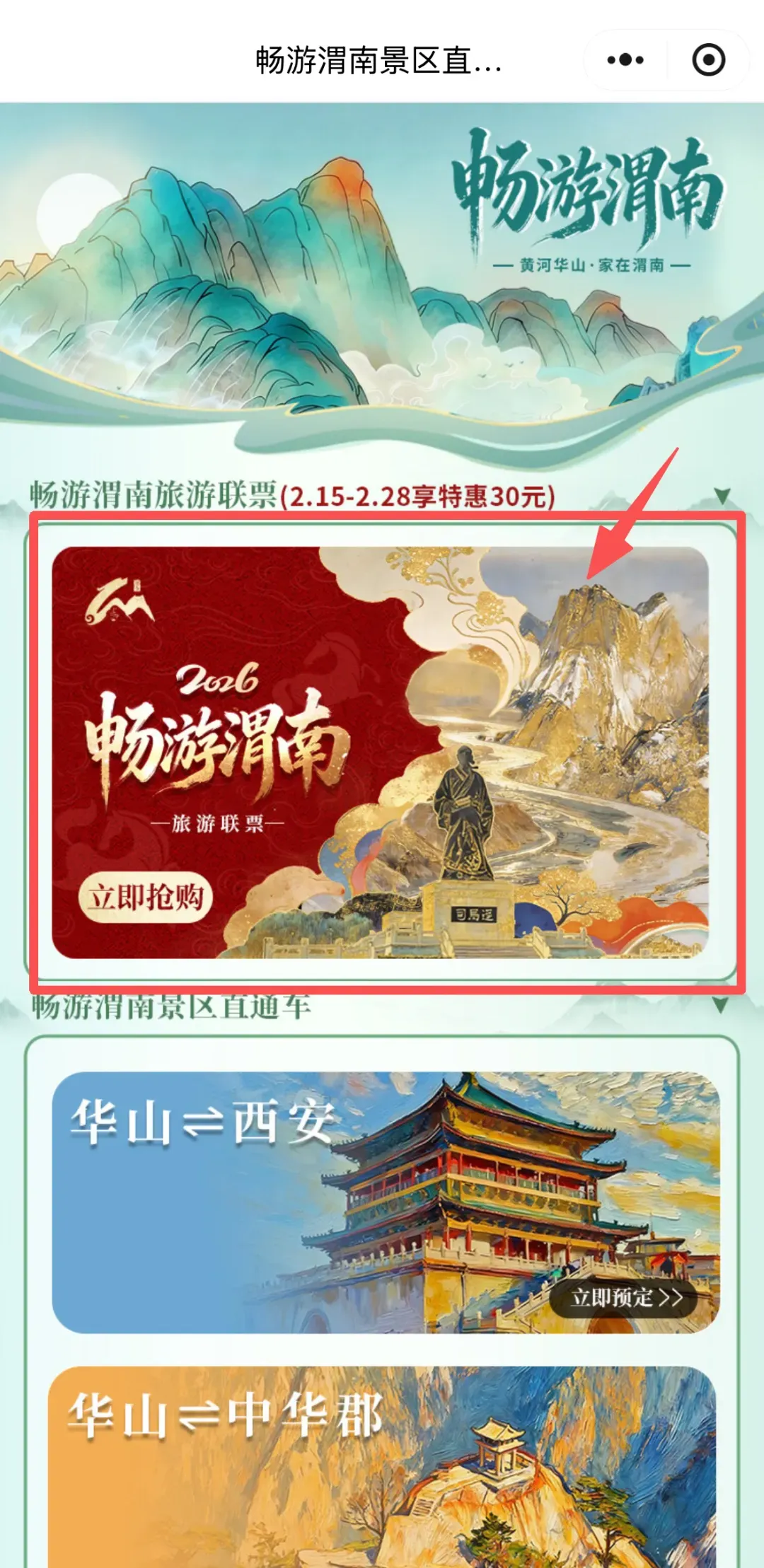 ✅兑换入口:微信搜索并进入“畅游渭南景区直通车”小程序-“畅游渭南旅游联票”购票、兑换界面或通过短信发送的链接进入兑换界面。