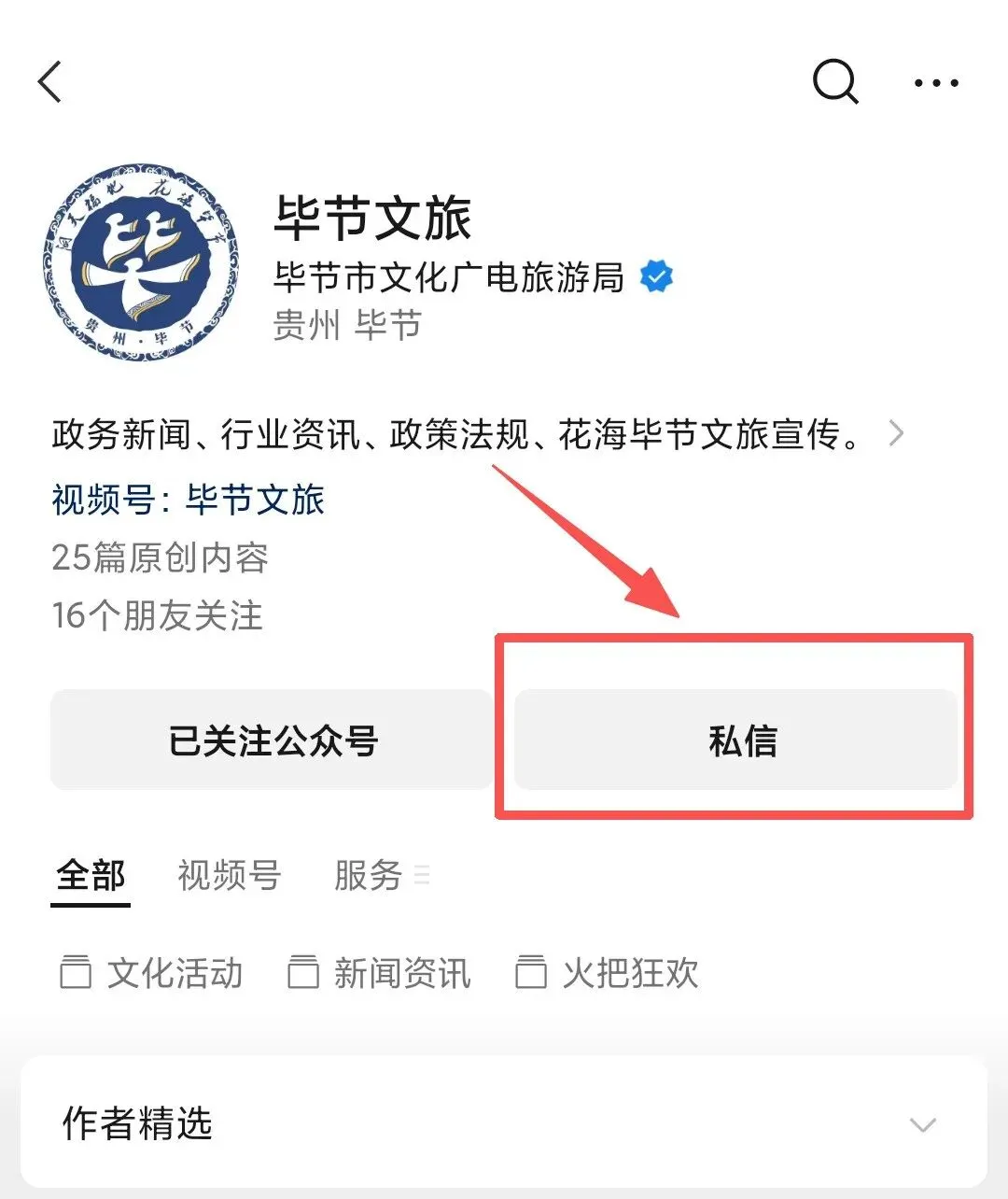 或是进入私信页面找到文旅服务栏