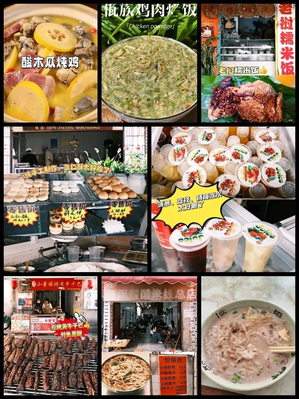 - 老挝糯米饭、手工面包、冰荔枝、炭烤黄牛干巴