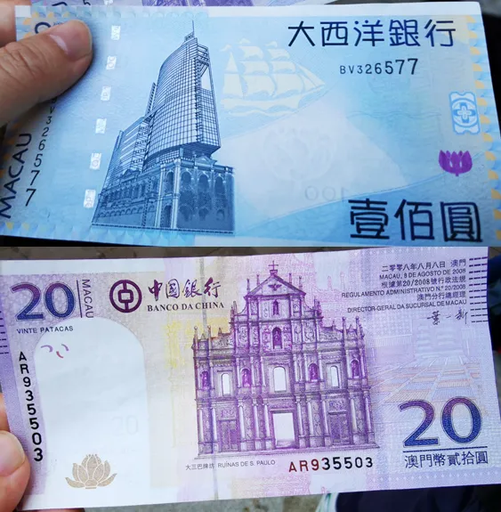 现金:少量现金备用,可以通用人民币、港币、澳门元(MOP)