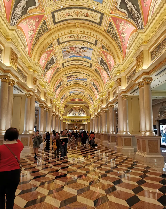 ❾ 威尼斯人,亚洲顶级度假村,开幕时是亚洲最大单幢式酒店及全球第二大的建筑物,室内大运河+贡多拉(可付费乘坐)+天幕街,复刻威尼斯水城风情,美食购物娱乐全覆盖。
