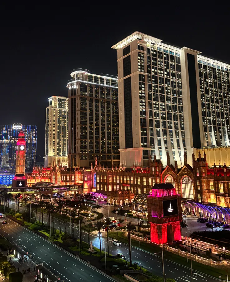 Day2 氹仔(奢华打卡线):官也街 → 龙环葡韵&嘉模圣母堂 → 威尼斯人 → 永利皇宫(缆车+音乐喷泉)→ 伦敦人 → 巴黎人 → 新濠影汇→ 返程