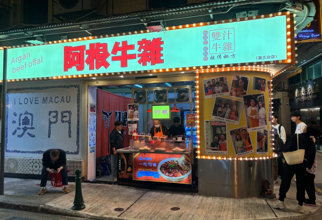 牛杂(大三巴):记不清哪一家,一碗55澳门元,咖喱味道。牛肚、牛筋好吃,牛肺一般,牛肠处理一般,偏腥偏硬。
