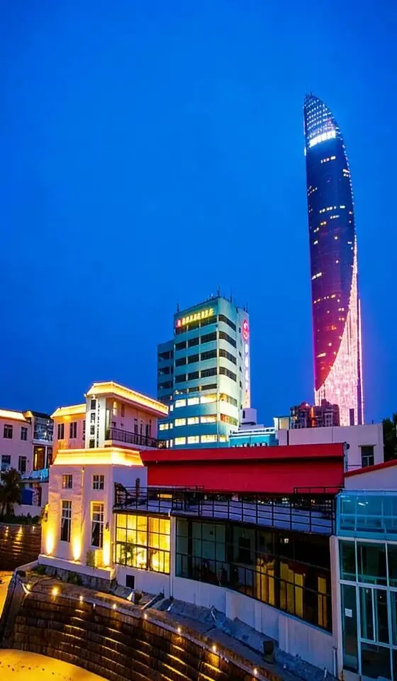 老渔港改造的文艺街区,复古渔船、创意小店、花墙涂鸦、网红咖啡馆,抬头就是双子塔。