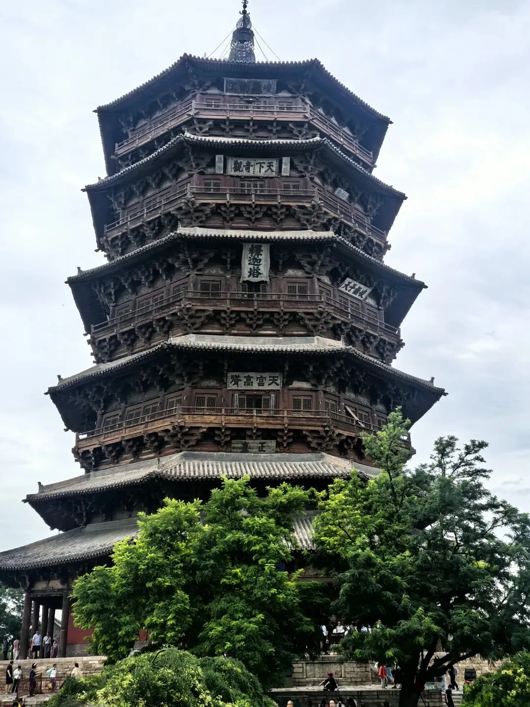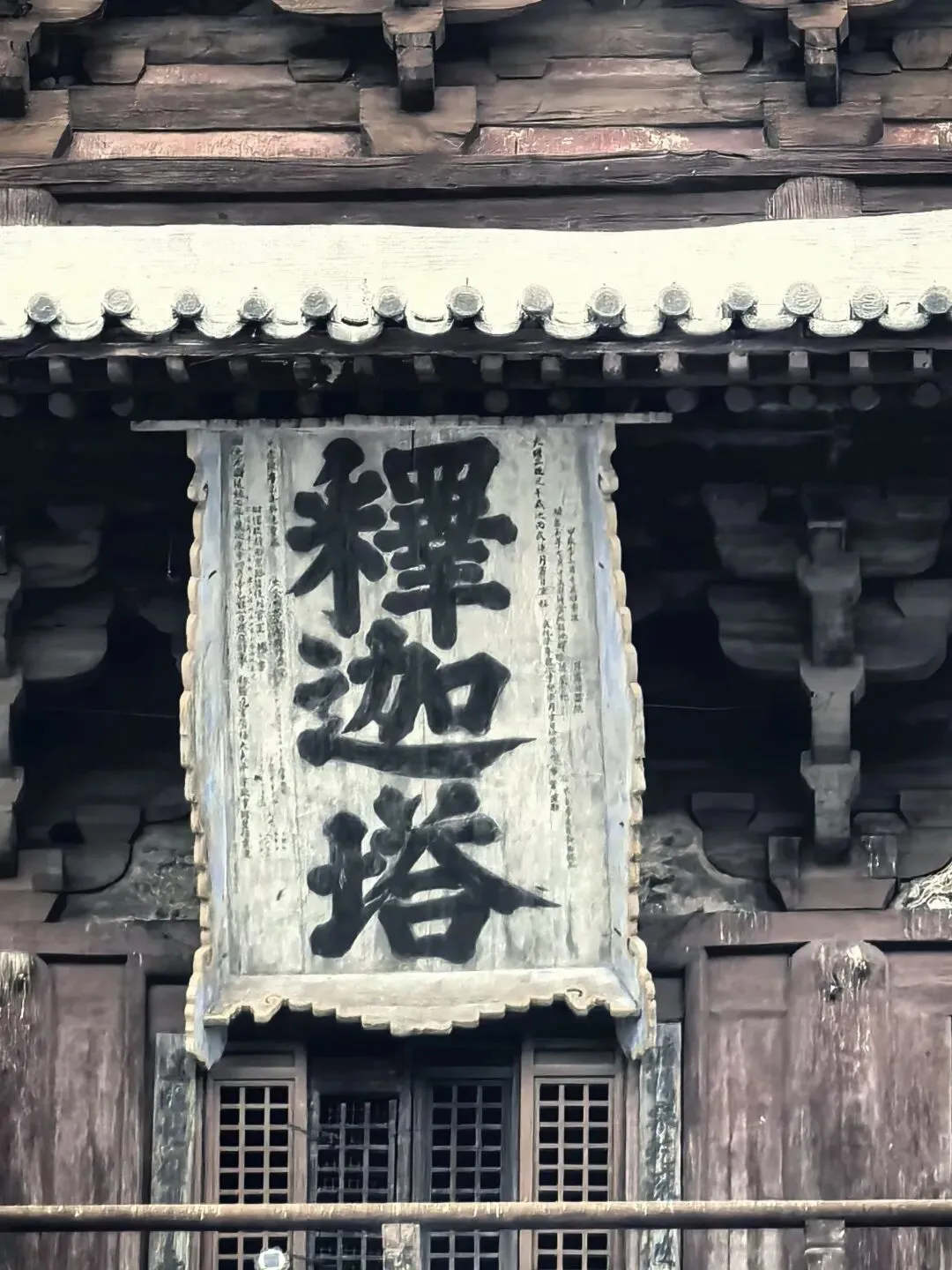 世界上现存最古老,最高的纯木结构建筑,有969年历史,跟意大利比萨斜塔,法国埃菲尔铁塔并称“世界三大奇塔”。外观看5层,实际相当于现在22到23层楼高,一共54块牌匾