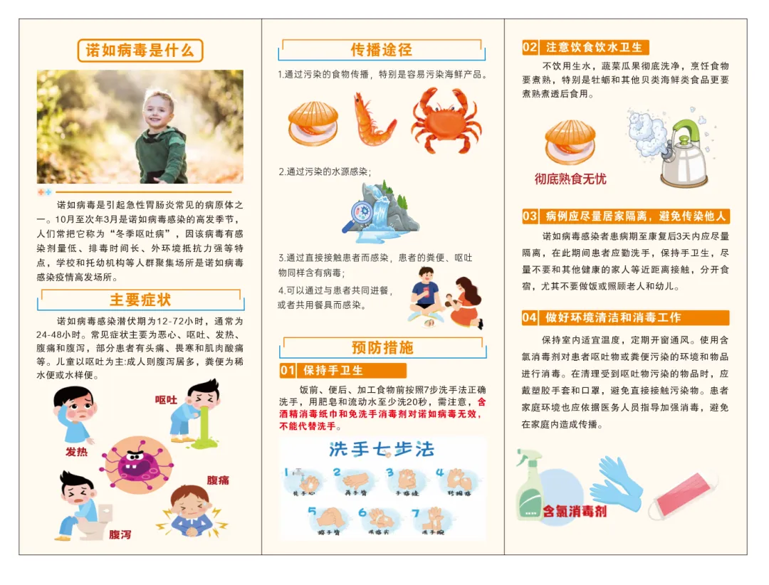 1. 个人防护:勤洗手是预防诺如病毒最有效的手段,饭前、便后、接触公共物品后,务必用肥皂和流动水按七步洗手法清洗至少20秒;避免接触疑似病例及其呕吐物、排泄物,在人员密集场所佩戴口罩; 2. 饮食安全:不饮用生水,不食用生冷、未煮熟的食物,尤其是贝类海鲜;蔬菜瓜果彻底洗净,生熟食物分开存放、分开加工; 3. 隔离要求:诺如病毒感染者患病期至康复后3天内,需严格居家或集中隔离,不得进入景区、酒店、旅游团等人员密集场所,避免传染他人;隔离期间做好个人卫生,分开食宿,不做饭、不照顾他人,康复后经确认方可恢复正常活动; 4. 健康监测:广大从业者、游客需做好自我健康监测,若出现呕吐、腹泻等不适症状,立即暂停活动、居家隔离或就医,不得带病上岗、带病出行; 5. 消杀规范:各经营单位需配备足量含氯消毒剂、防护用品,定期开展环境消杀,做好消杀记录,确保消杀到位、不留死角;明确酒精对诺如病毒无效,不依赖酒精消杀。