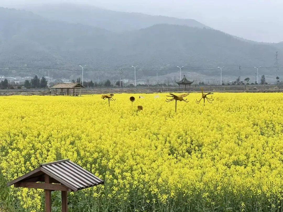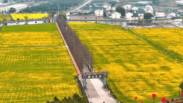 坐拥近千亩广袤油菜花海,金黄花浪翻涌,花海规模大、视野开阔,随手一拍都是田园风光大片。村里还藏着一座浙东婚俗文化馆,被称作 “花田里的博物馆”,万工花轿、老婚俗物件一应俱全,赏花之余还能感受地道浙东文化。