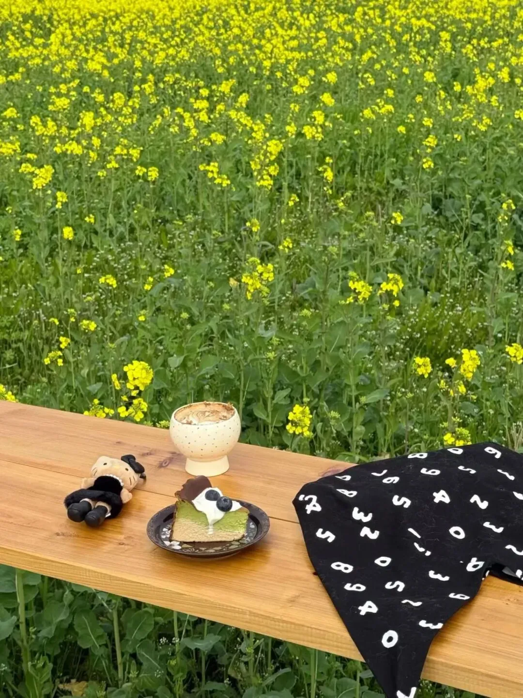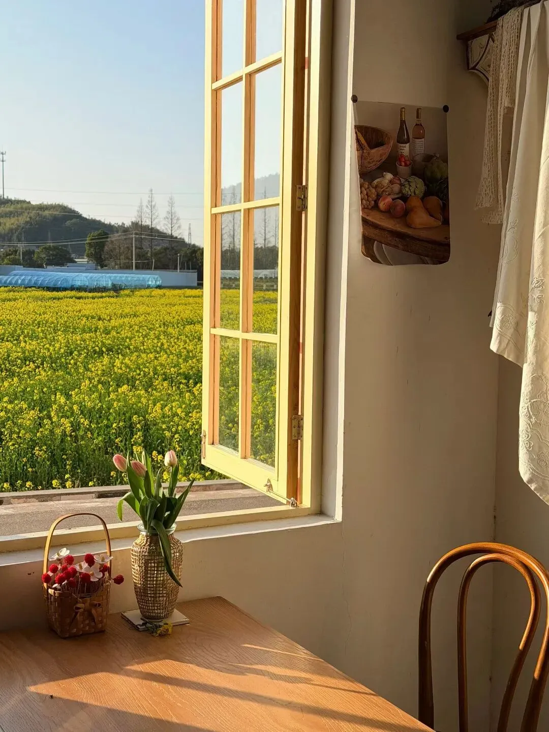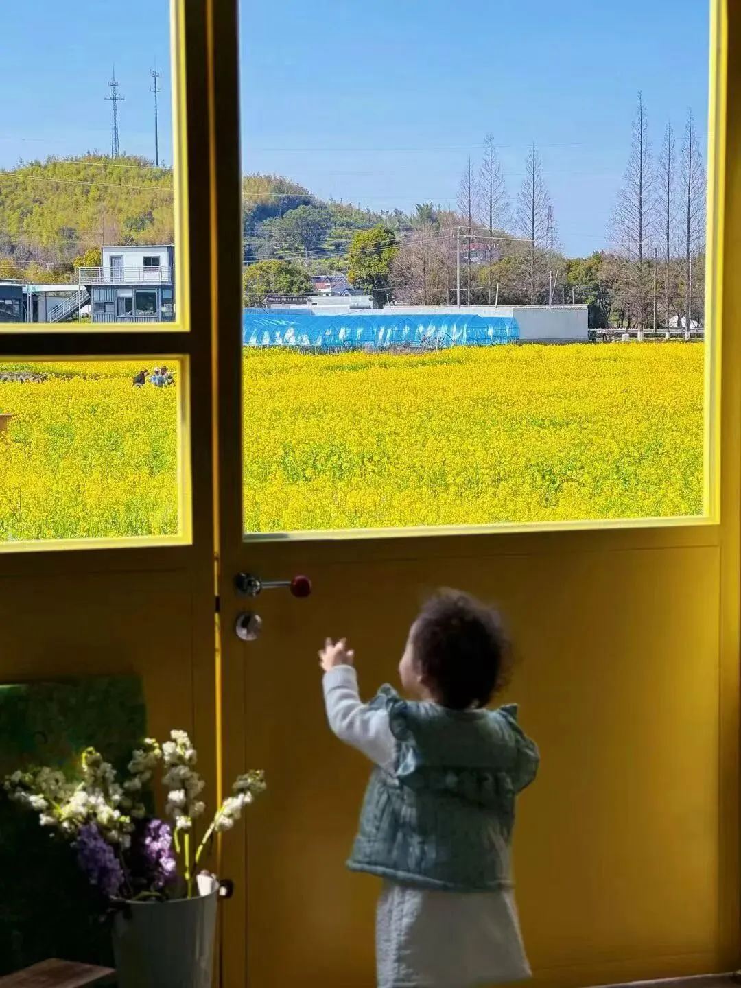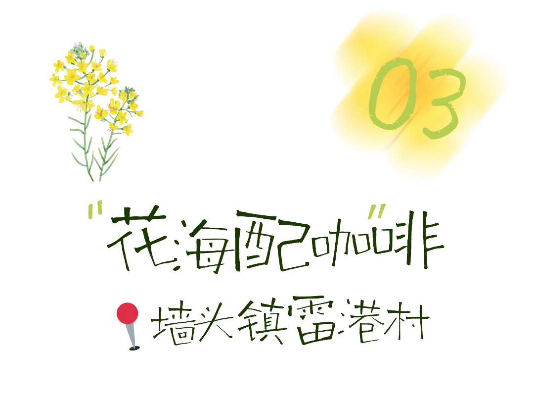 墙头镇雷港村金黄的油菜花田依偎在福里咖啡旁,赏花累了推门进店,点一杯咖啡坐在窗边,看窗外花浪翻涌,春日的美好不过如此。