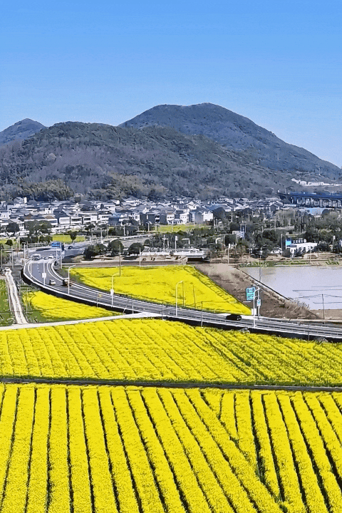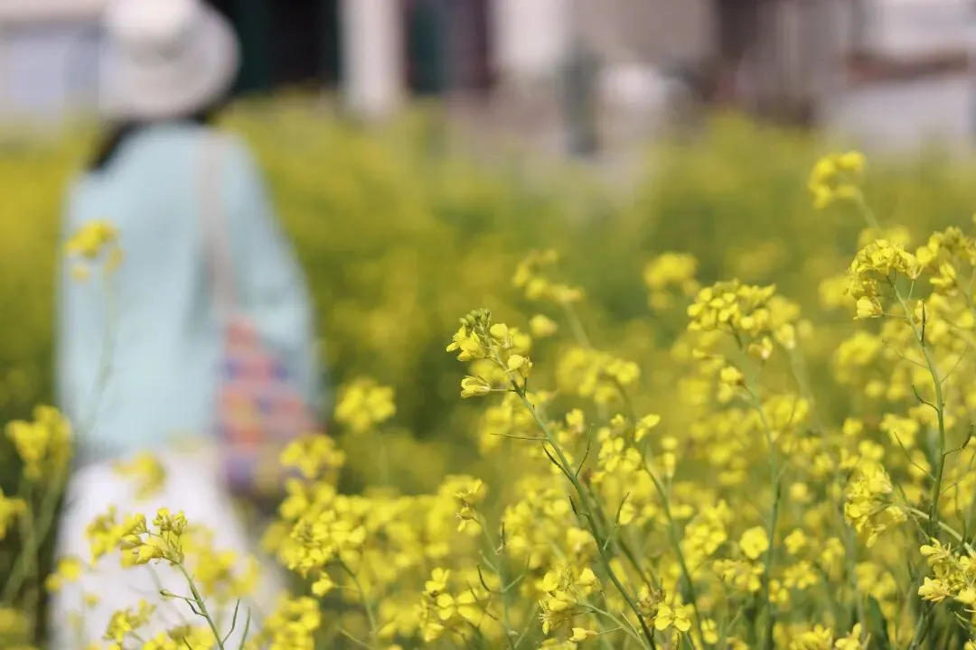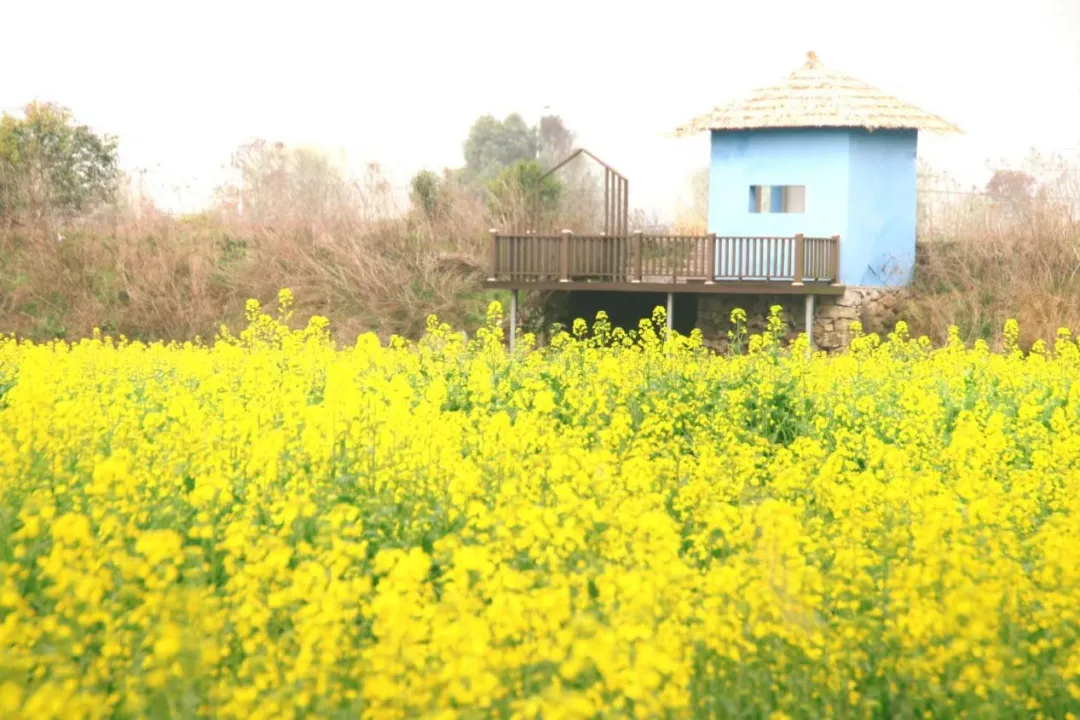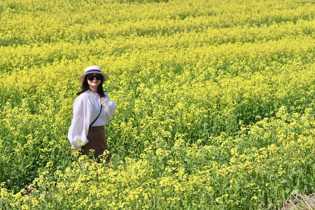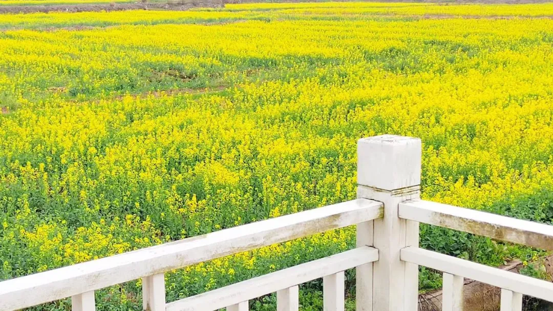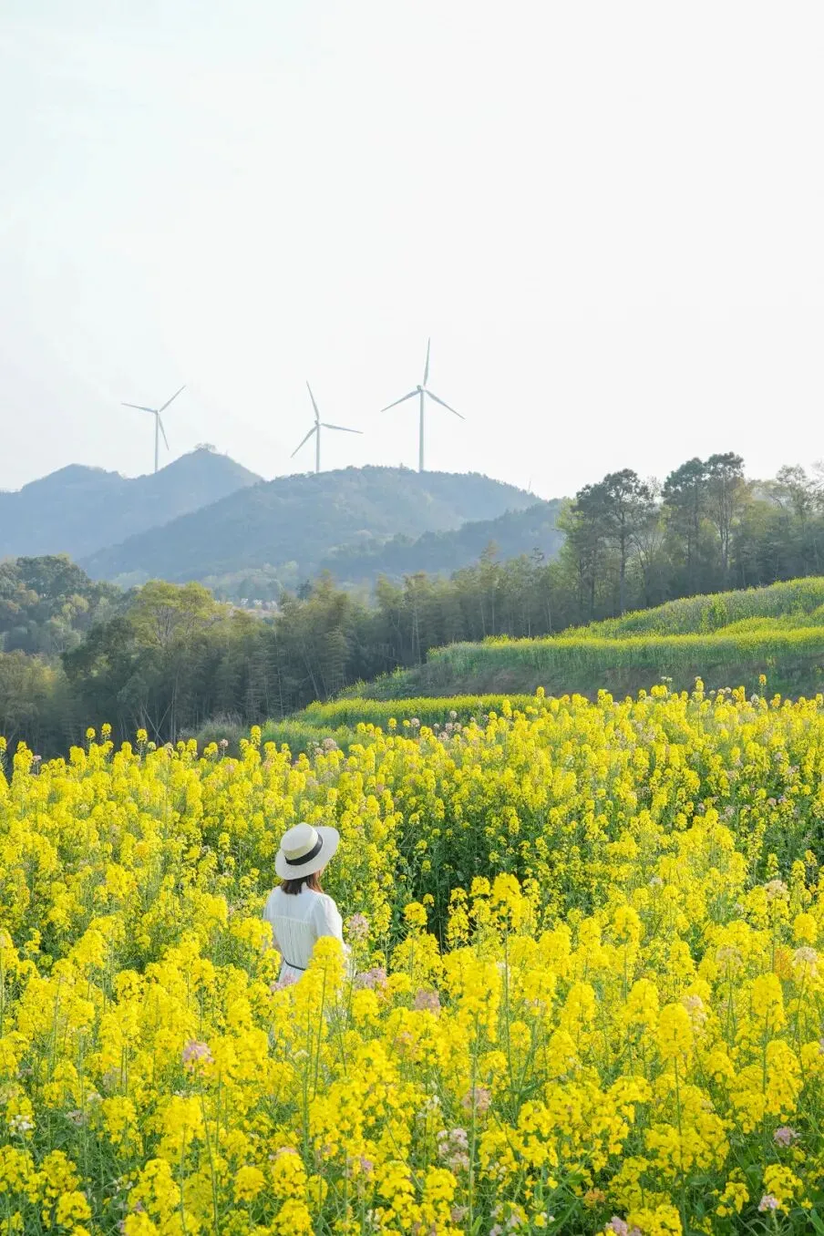 新桥镇关头塘的油菜花田,千亩花浪随春风起伏,嫩黄花穗缀满枝头,阳光掠过便翻涌着细碎金光。田间伫立着双层观景亭,木阶白栏相映,登高可将整片花海尽收眼底,与远山黛影、错落村舍勾勒出天然田园画卷,花田一隅的蓝白风车轻转,为乡野静谧添了几分童话气息。