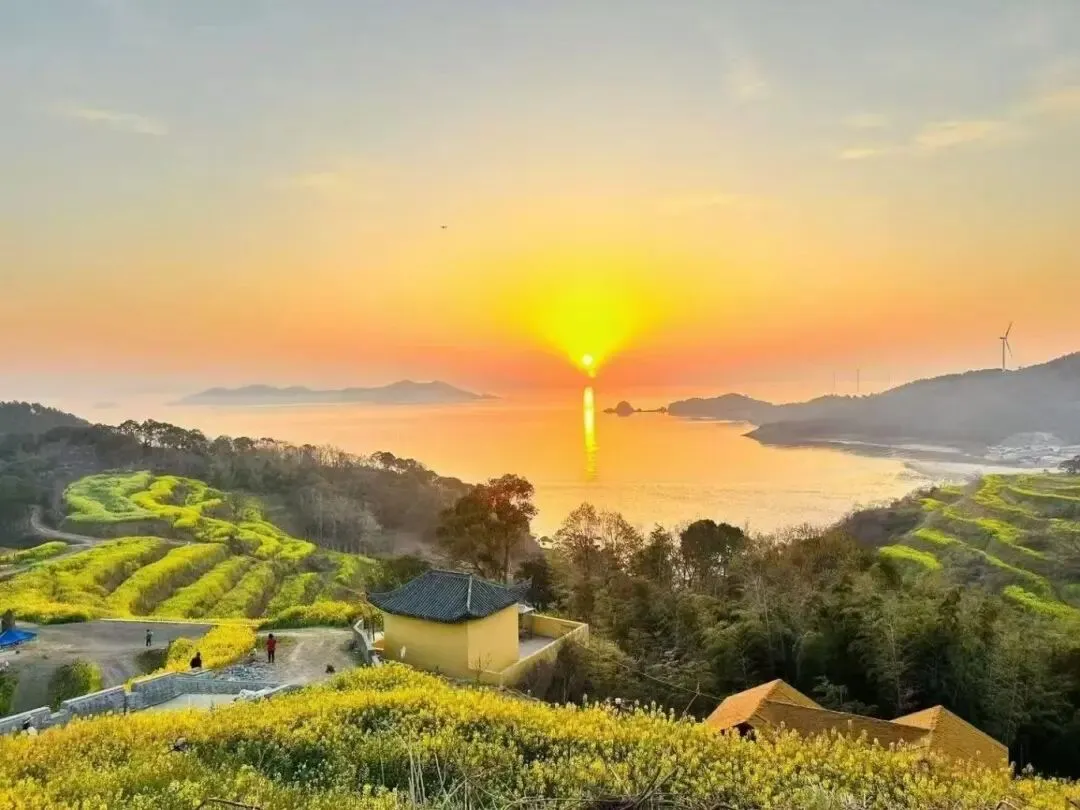 涂茨镇钱仓村东门外是象山经典的山海赏花地!漫山遍野的油菜花铺展在山坡,山下便是蔚蓝大海与细软沙滩,花海、青山、碧海同框,随手一拍都是油画感大片。