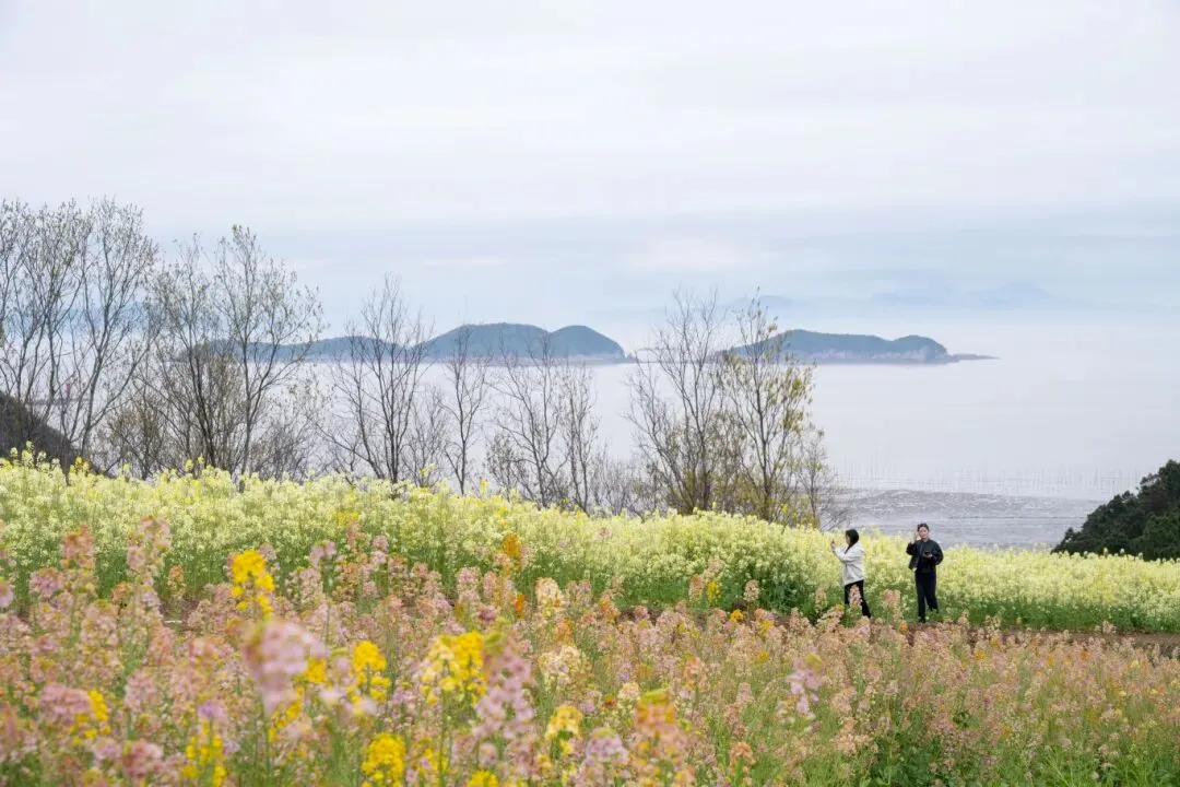 一起去花岙岛寻找春的气息!800亩土地上,黄、粉、白等各色油菜花交织成斑斓花浪,微风吹过,花香弥漫整个海岛。