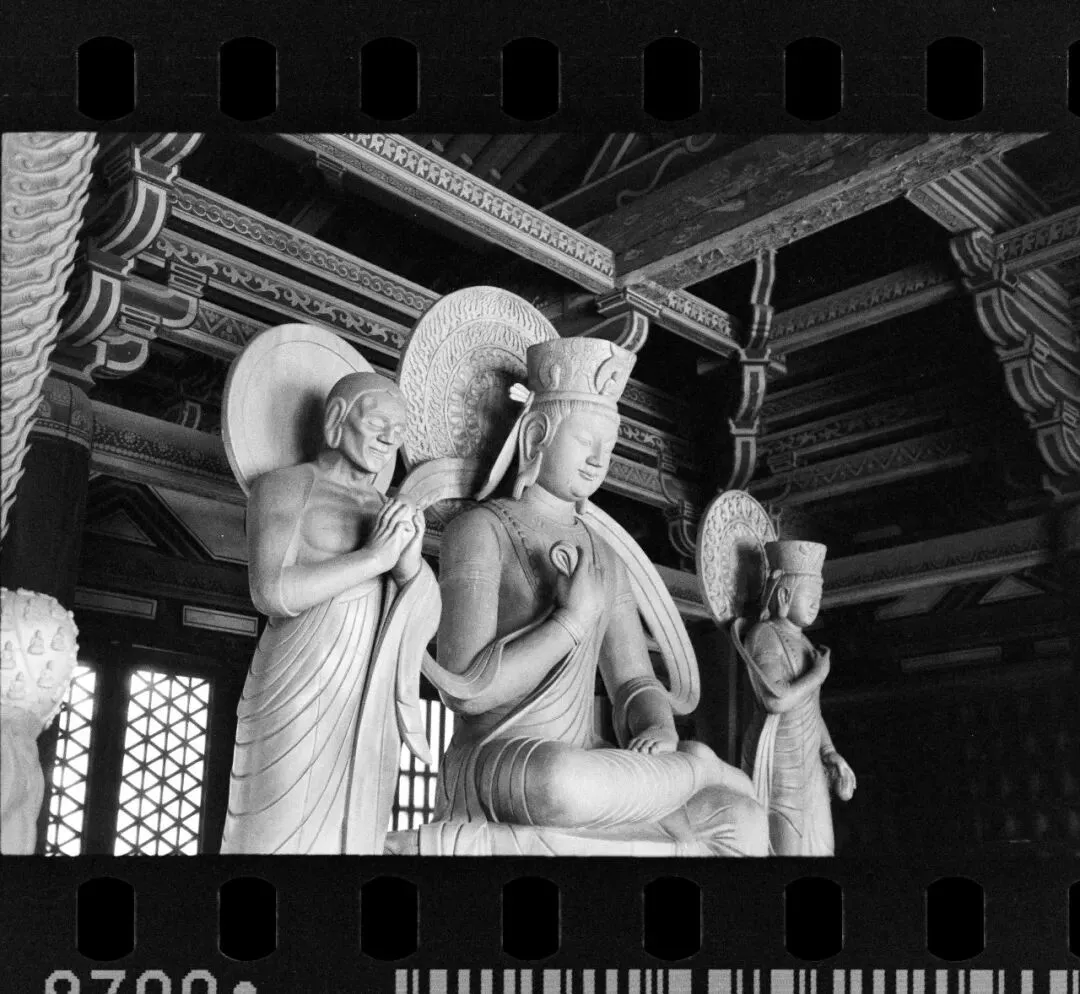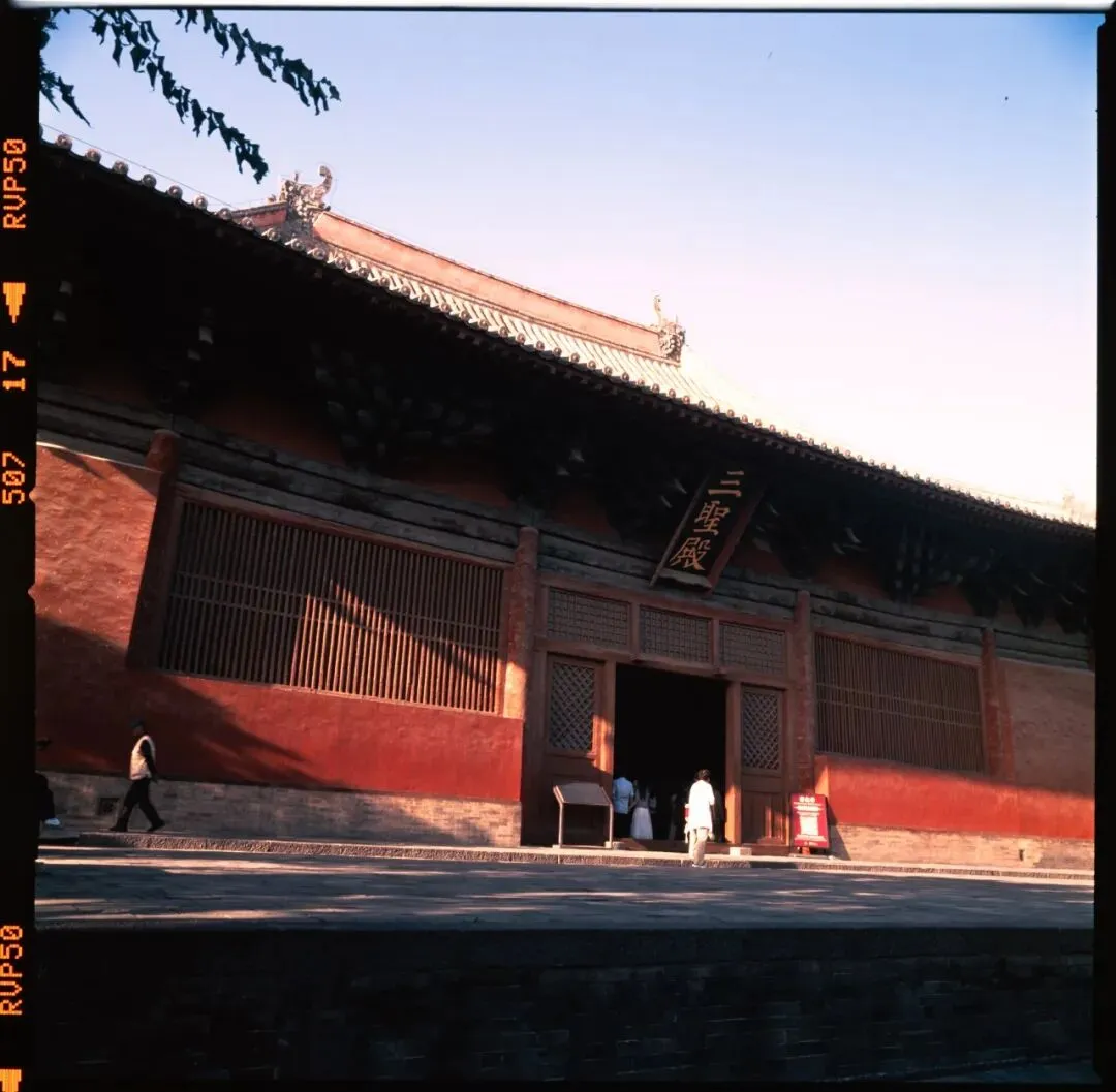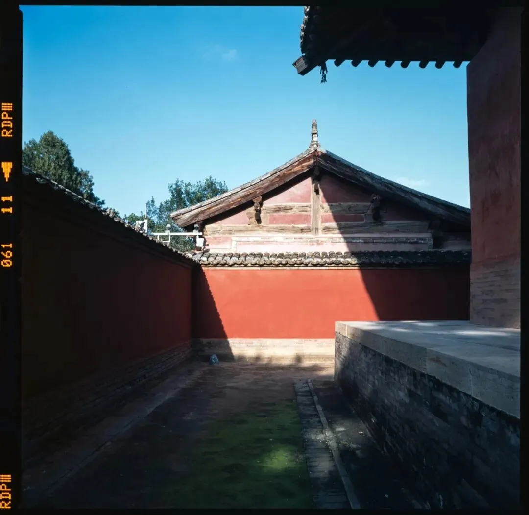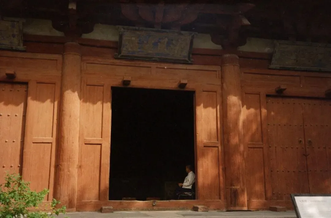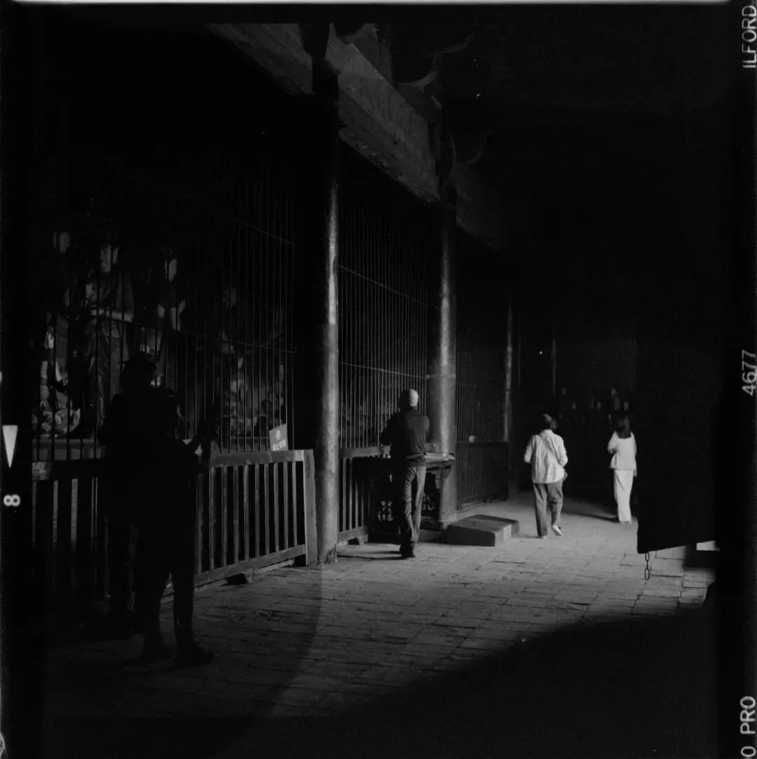 可惜,佛光寺成了我此行拍摄最惨的一站。哈苏快门在这儿彻底“罢工”,120胶卷几乎全军覆没。室外有一幕特别动人:一位看门人坐在朱红大门下,阳光正好落在他身上。我端着哈苏等了许久,终于等到那个完美的瞬间——结果冲洗出来严重欠曝,根本没法看。万幸当时顺手用Rollei 35也拍了一张,总算留住了点影子。