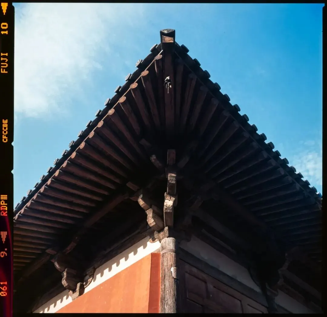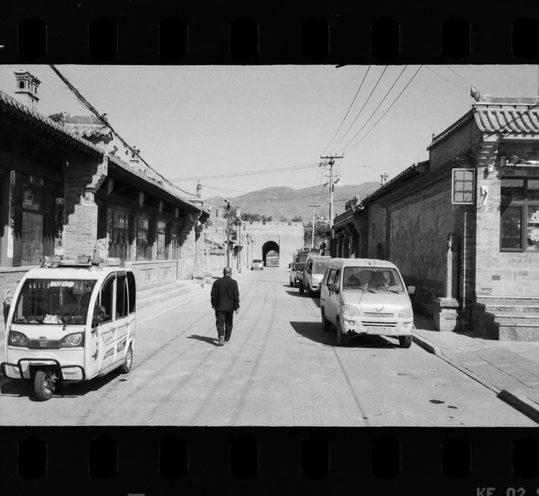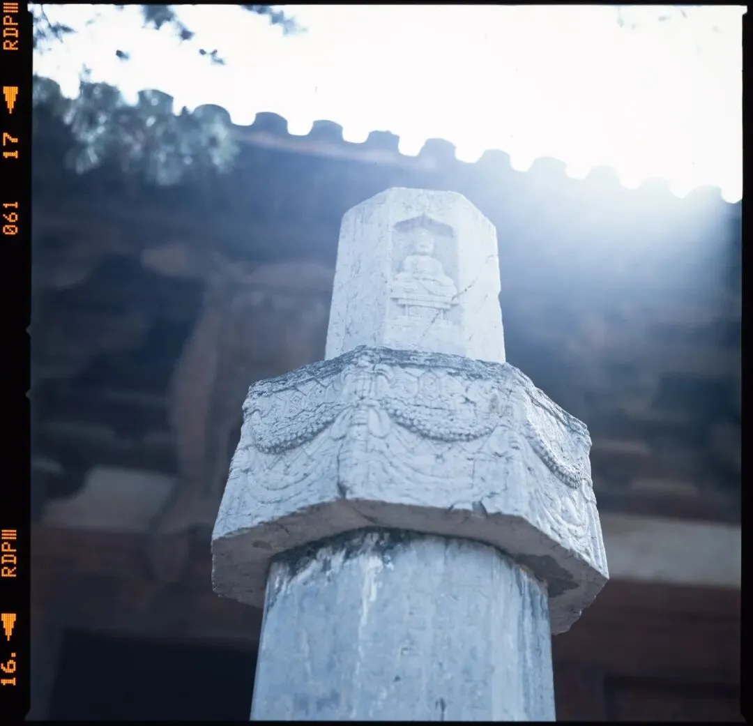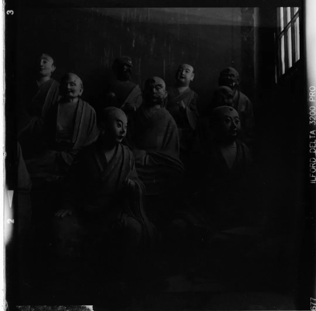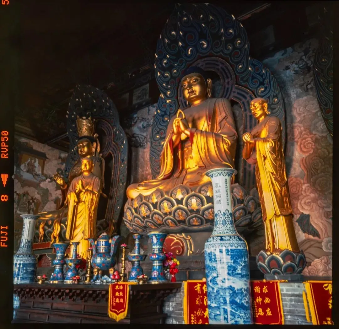 可惜,佛光寺成了我此行拍摄最惨的一站。哈苏快门在这儿彻底“罢工”,120胶卷几乎全军覆没。室外有一幕特别动人:一位看门人坐在朱红大门下,阳光正好落在他身上。我端着哈苏等了许久,终于等到那个完美的瞬间——结果冲洗出来严重欠曝,根本没法看。万幸当时顺手用Rollei 35也拍了一张,总算留住了点影子。