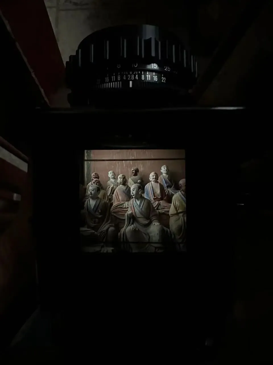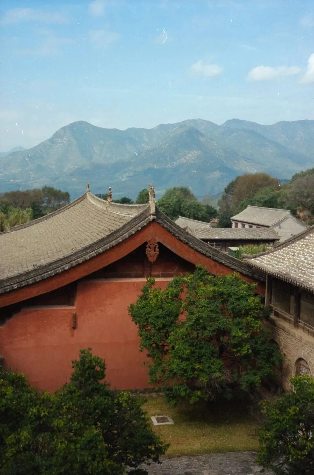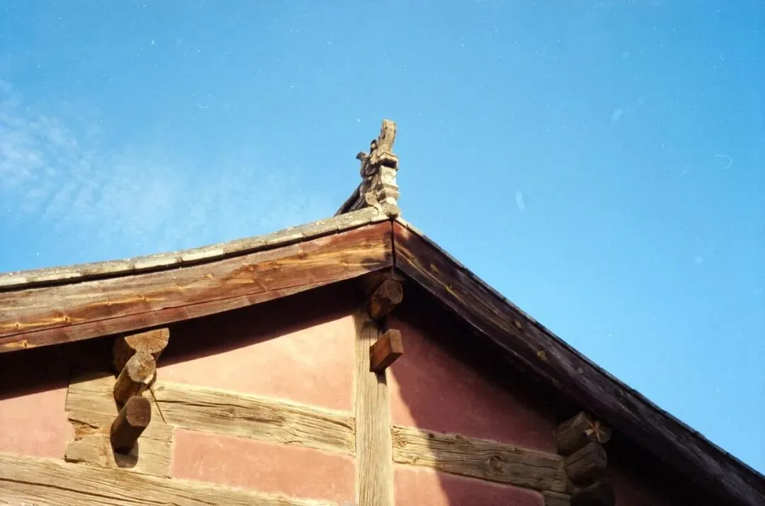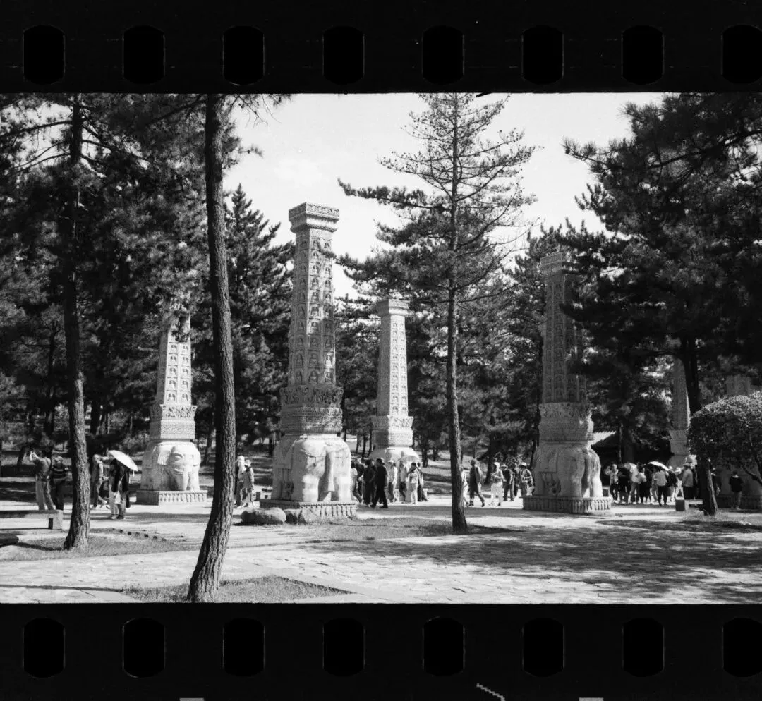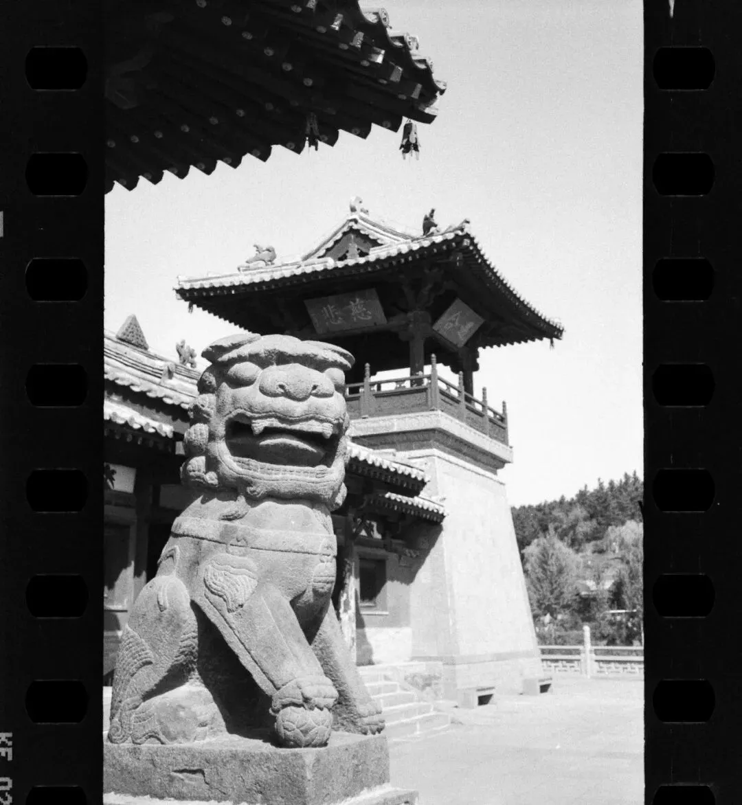 可惜,佛光寺成了我此行拍摄最惨的一站。哈苏快门在这儿彻底“罢工”,120胶卷几乎全军覆没。室外有一幕特别动人:一位看门人坐在朱红大门下,阳光正好落在他身上。我端着哈苏等了许久,终于等到那个完美的瞬间——结果冲洗出来严重欠曝,根本没法看。万幸当时顺手用Rollei 35也拍了一张,总算留住了点影子。
