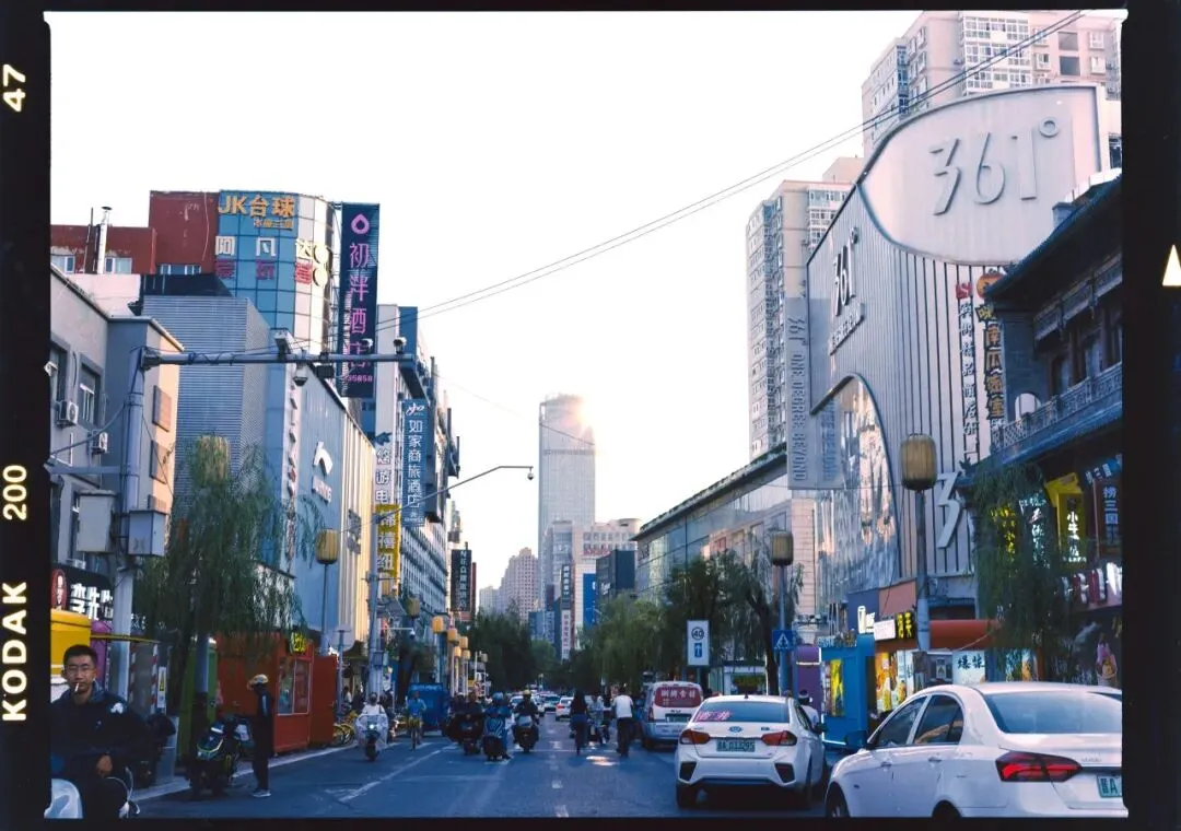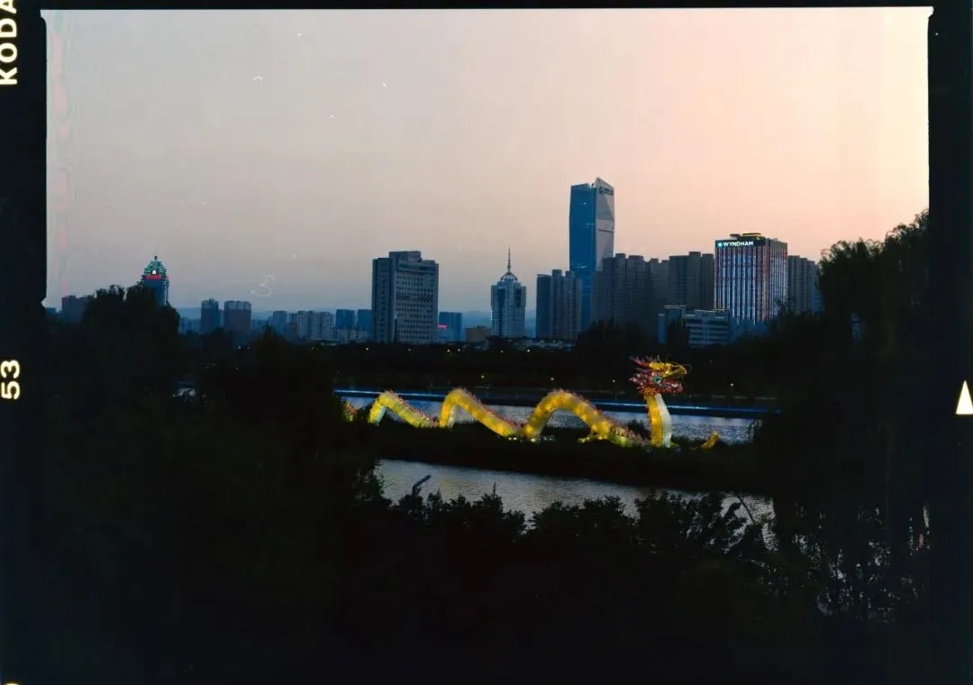 新修的城墙像是西安城墙的“迷你升级版”:有角楼、有瓮城,甚至还在墙上插了座雁塔。傍晚我登上城墙,心里冒出一种既熟悉又陌生的感觉——像走进了平行时空里的故乡复制品,似曾相识,却又空荡荡的,少了点人气。在古城里一直逛到夜色阑珊,灯光搞得也挺漂亮,但是实在不适合胶片,拖着两条废腿回酒店休息,明天一早开拔应县。