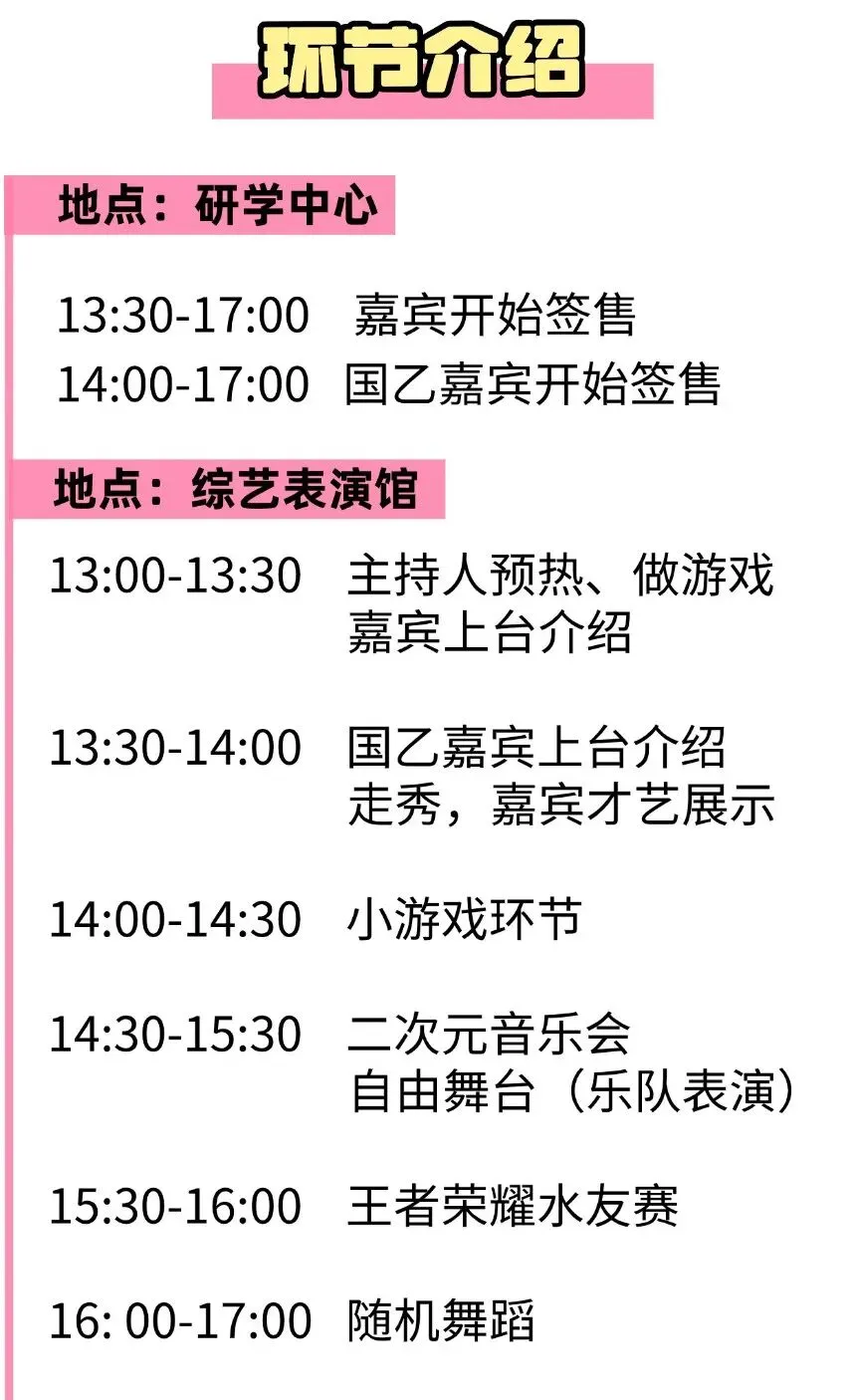 趣味活动:IP狂欢、痛车展示、二次元音乐会、《王者荣耀》水友赛、随机舞蹈挑战等众多活动嗨翻全场!