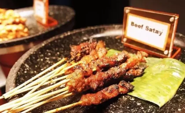 沙爹是将腌好的牛肉、羊肉、鸡肉串成串以适度的火候炭烤后,再蘸一层厚厚的沙爹酱一起入口。