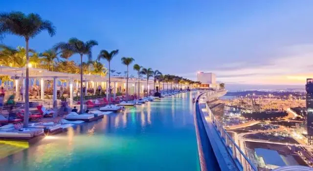 设有屋顶无边泳池、20个餐饮场所和世界级赌场,为客人带来豪华享受。酒店可以直接通往新加坡的一流购物商场。