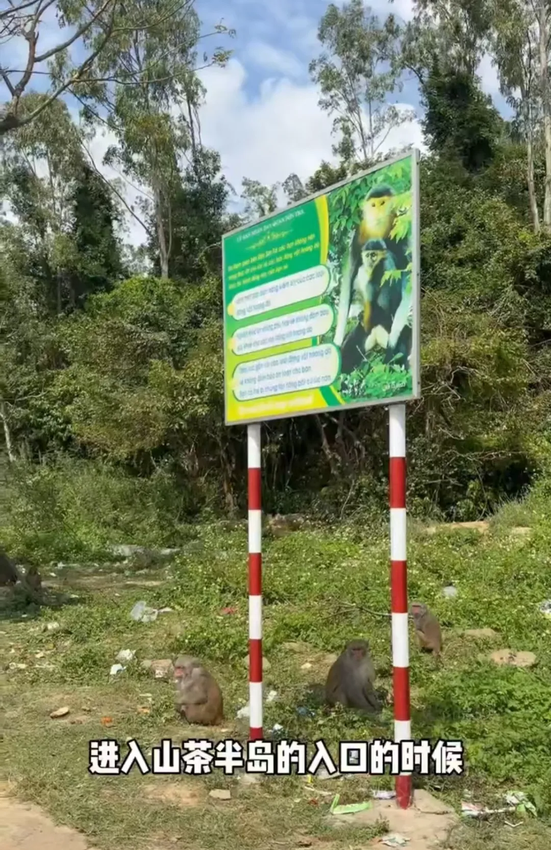 刚进山茶半岛入口,路边就竖着“小心猴子”的牌子。我当时还想,这应该就是意思一下吧。