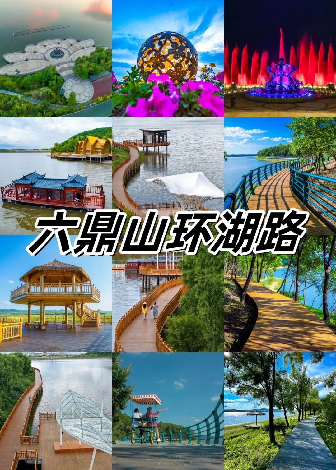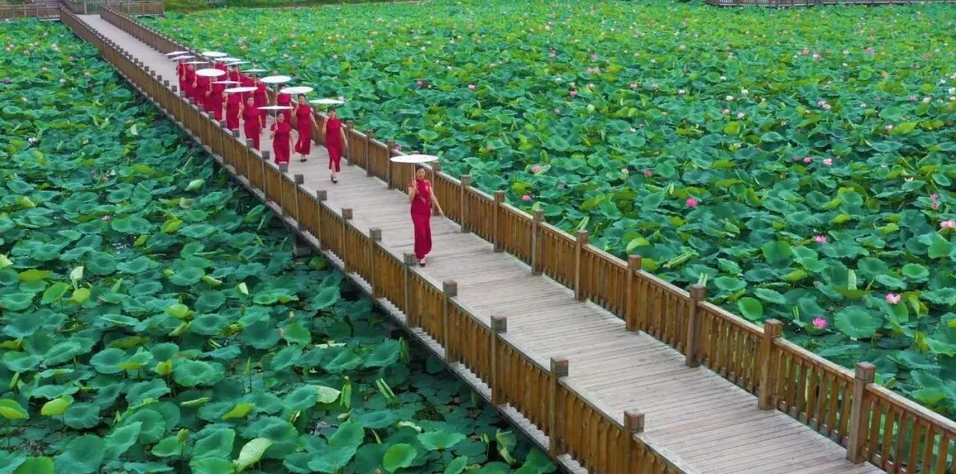 第十站:沿环湖木栈道漫步游览,途经多座造型别致的观景凉亭,可以休憩拍照。