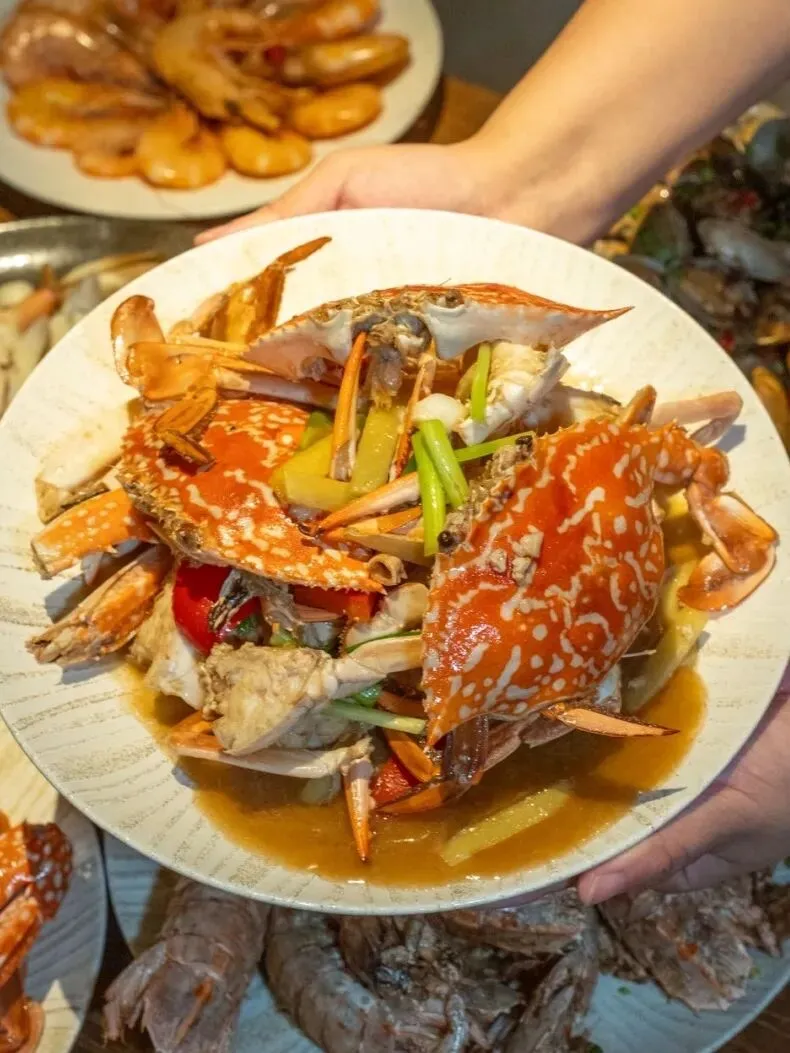 兰花蟹葱姜爆炒最对味,蟹肉Q弹紧实,鲜汁裹着酱汁,配米饭能多干两碗。