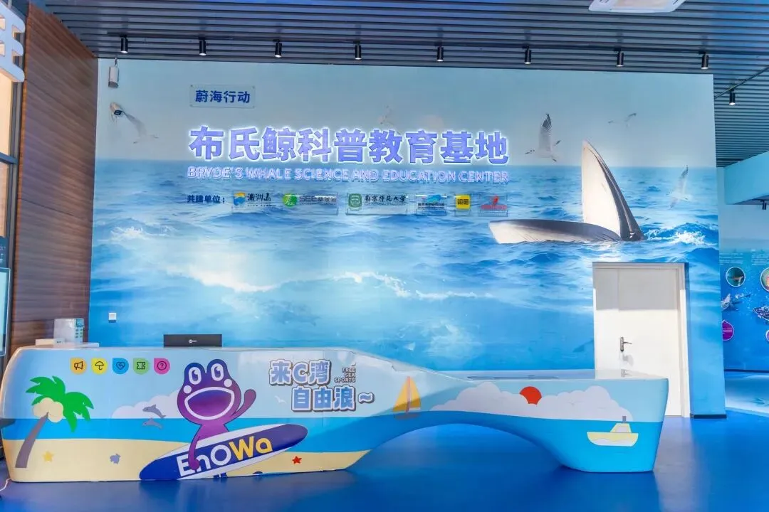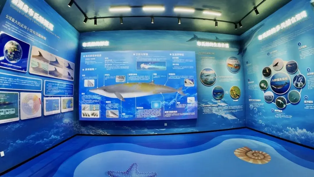 这是全国首个海岛布氏鲸科普基地,图文展陈、互动装置一应俱全,能安安静静了解这些大家伙的习性和保护故事,读懂了这份海洋浪漫、才能更好守护我们与布氏鲸共同的家园。