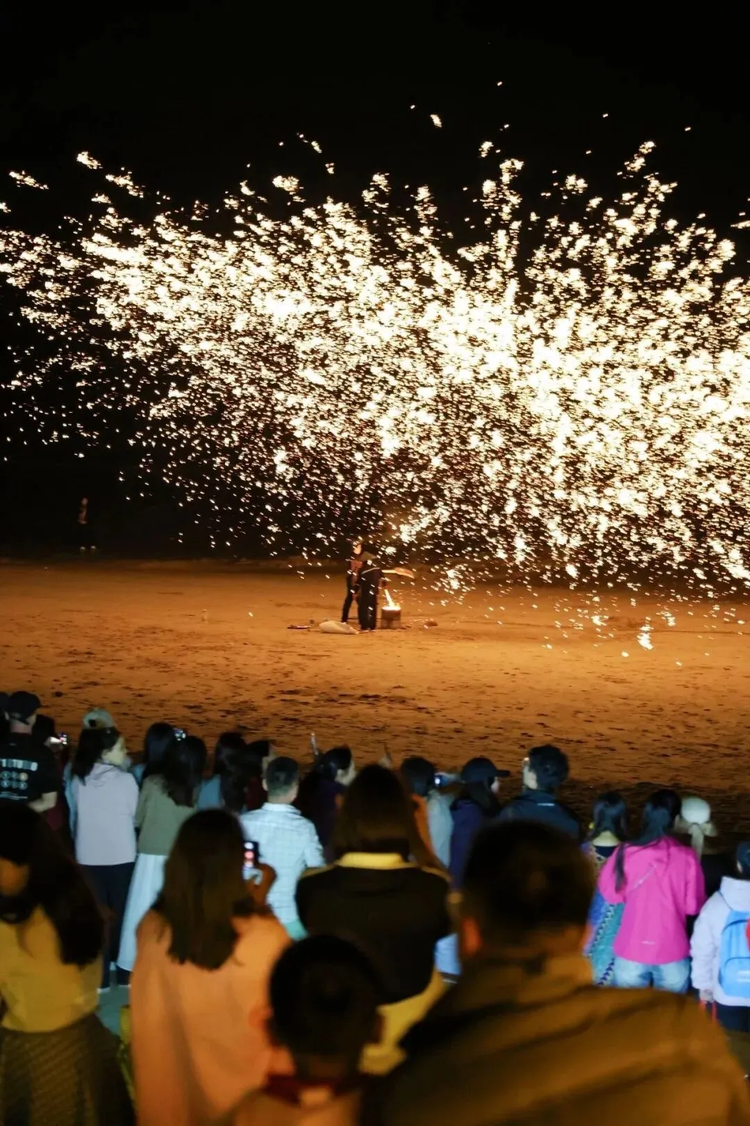 入夜后,还有打铁花表演,铁水泼洒出万点金星,落在夜幕里,像一场绚烂的流星雨,亲眼见了才懂什么叫惊艳。