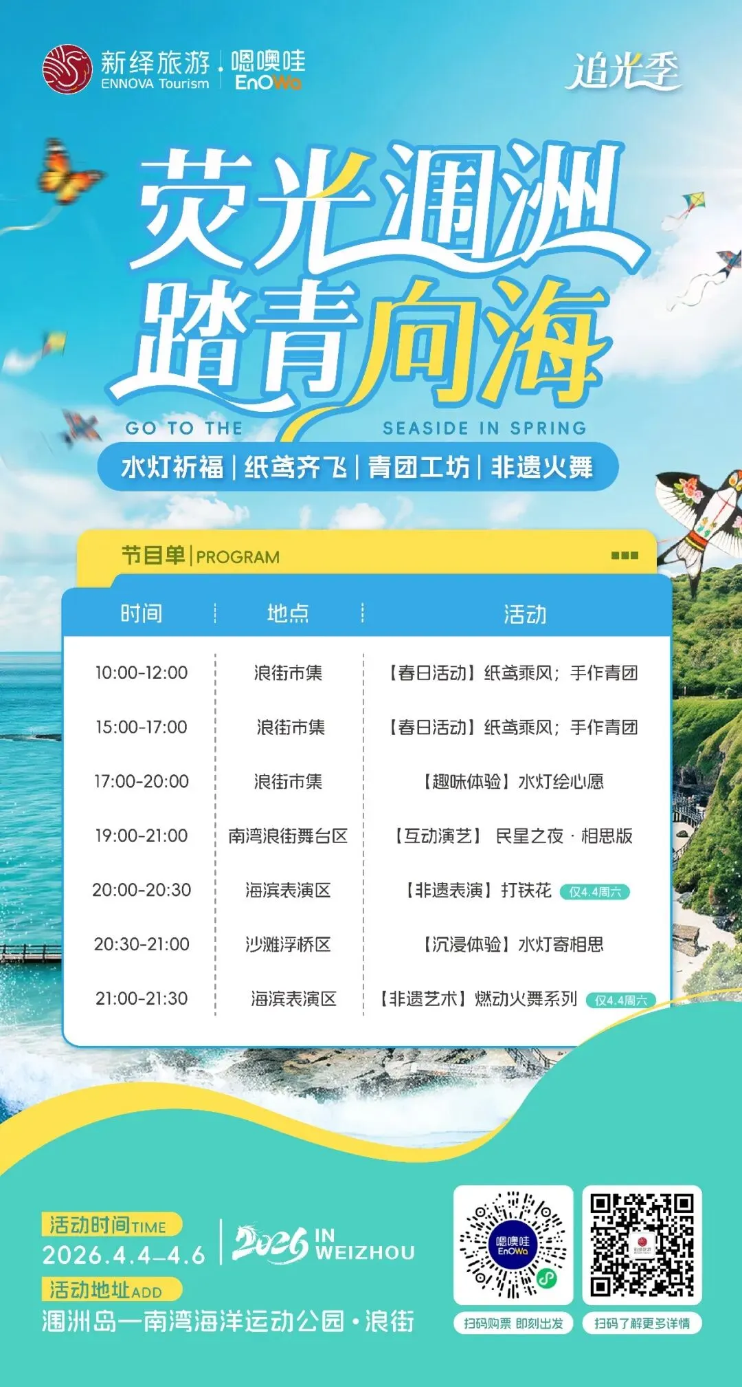 除了当下的女神月99元专属船票福利,清明、三月三期间,涠洲岛还藏了一堆限定线下活动,让春日海岛之旅更有惊喜感,逛吃玩一站式解锁!