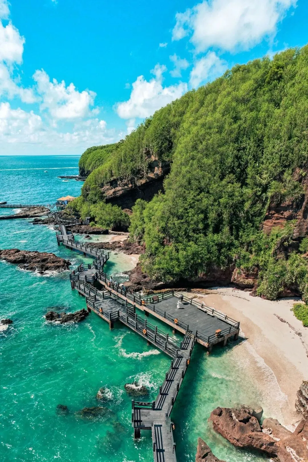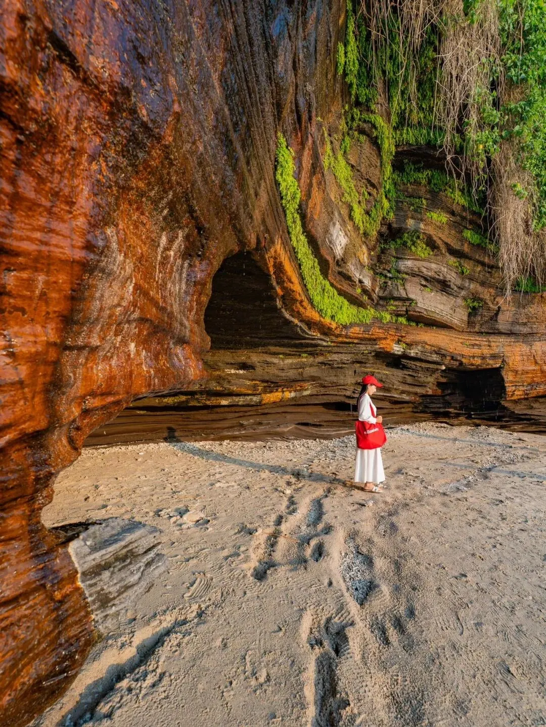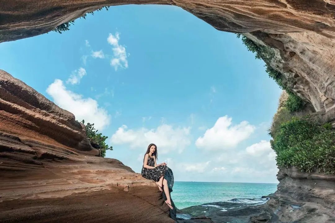 海滩右侧直走,还有个新晋打卡点——素有小暮崖之称,与大海、火山崖洞同框,定格这份海洋之美。