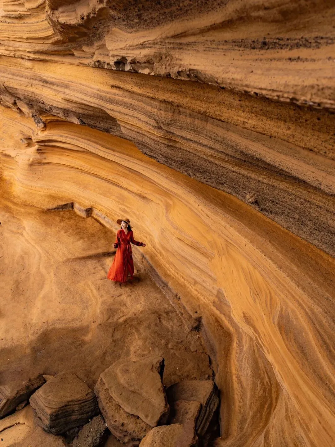 这里也是看日落的好地方,夕阳洒在岩层上,光线柔和又治愈,随便拍都很出片。