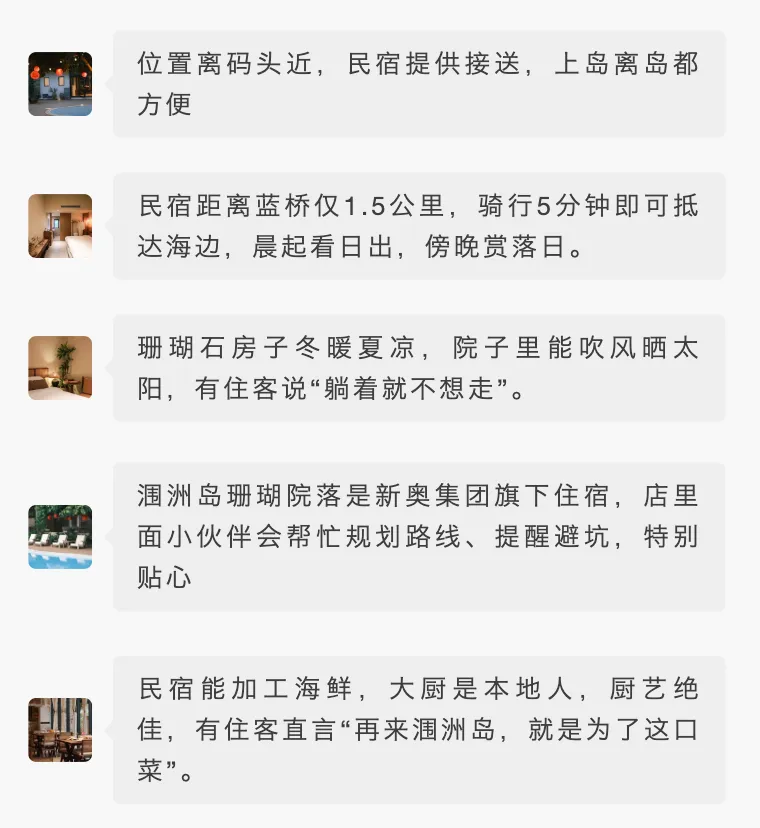 体验涠洲岛特色,推荐住圩仔村的【涠洲岛珊瑚院落】民宿。2025年刚升级完设施,保留了珊瑚石古村落的原貌,住客评价拉满: