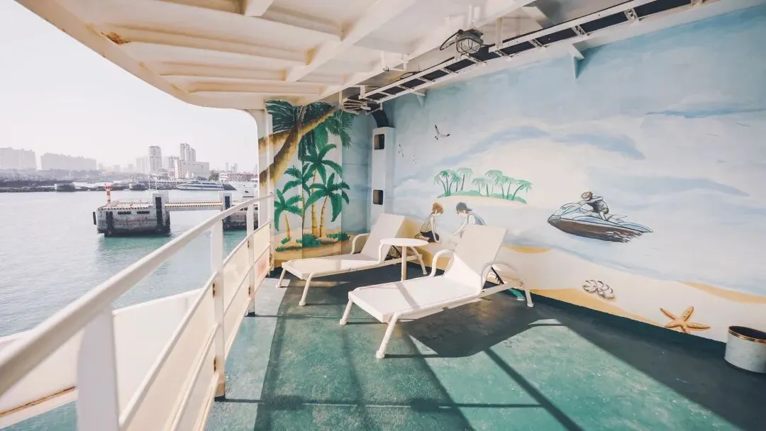 游轮采用夕发朝至的夜航模式,当天18点从北海国际客轮港出发,次日7点天微亮抵达海口,宛若一座漂浮海上的移动海景酒店,既能省去一晚住宿费用,又能在甲板上吹着海风看星空,清晨还能遇见海上日出的惊喜。
