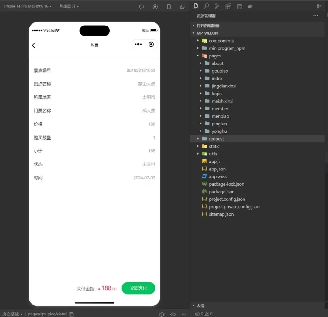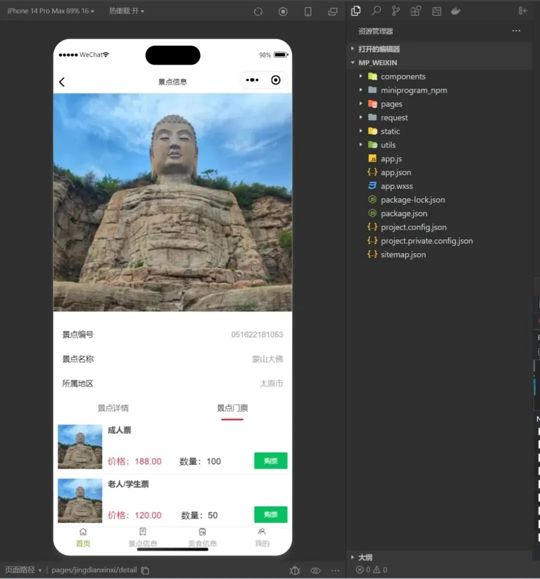 Springboot+Vue+Uniapp的景区旅游购票小程序(源代码+数据库+9000字)