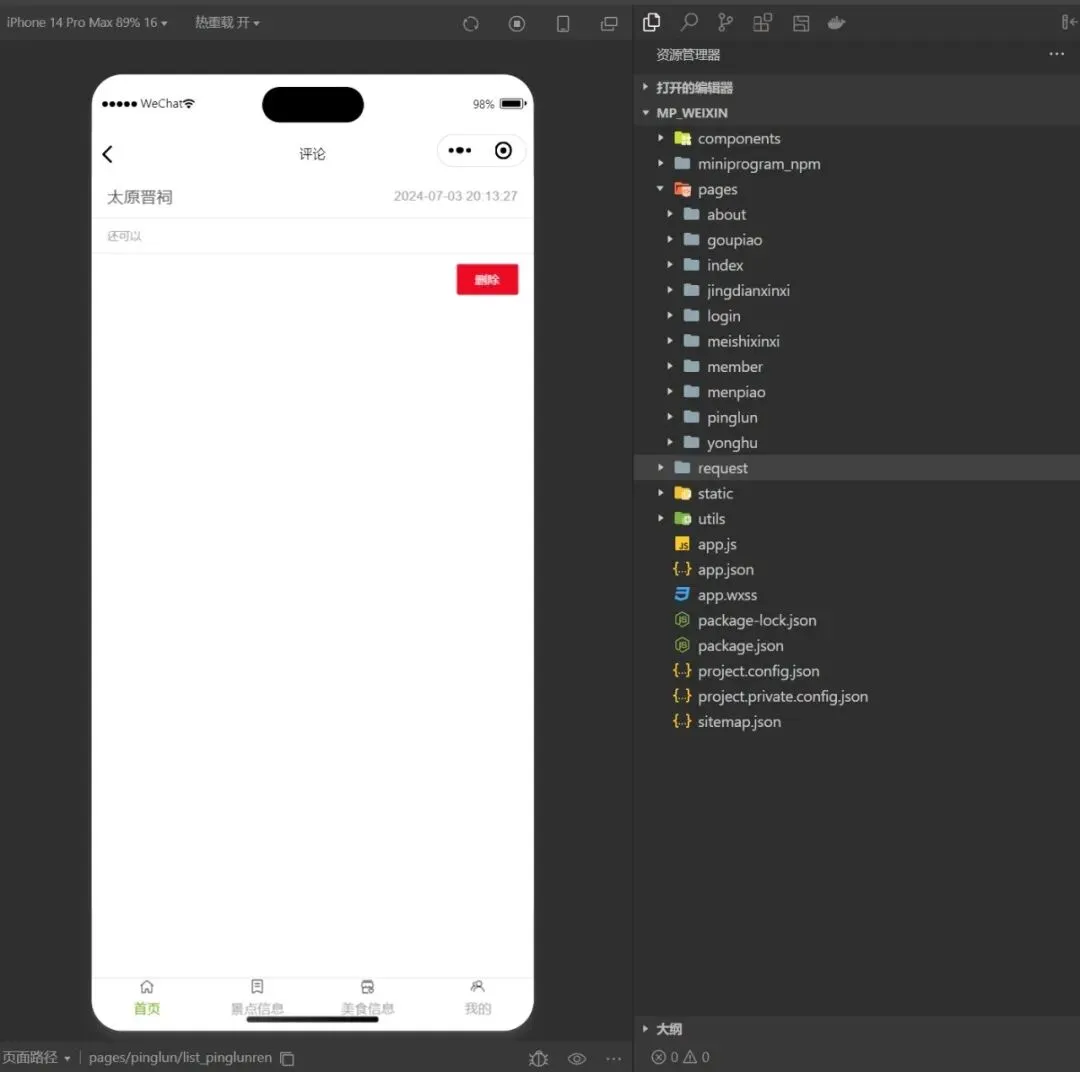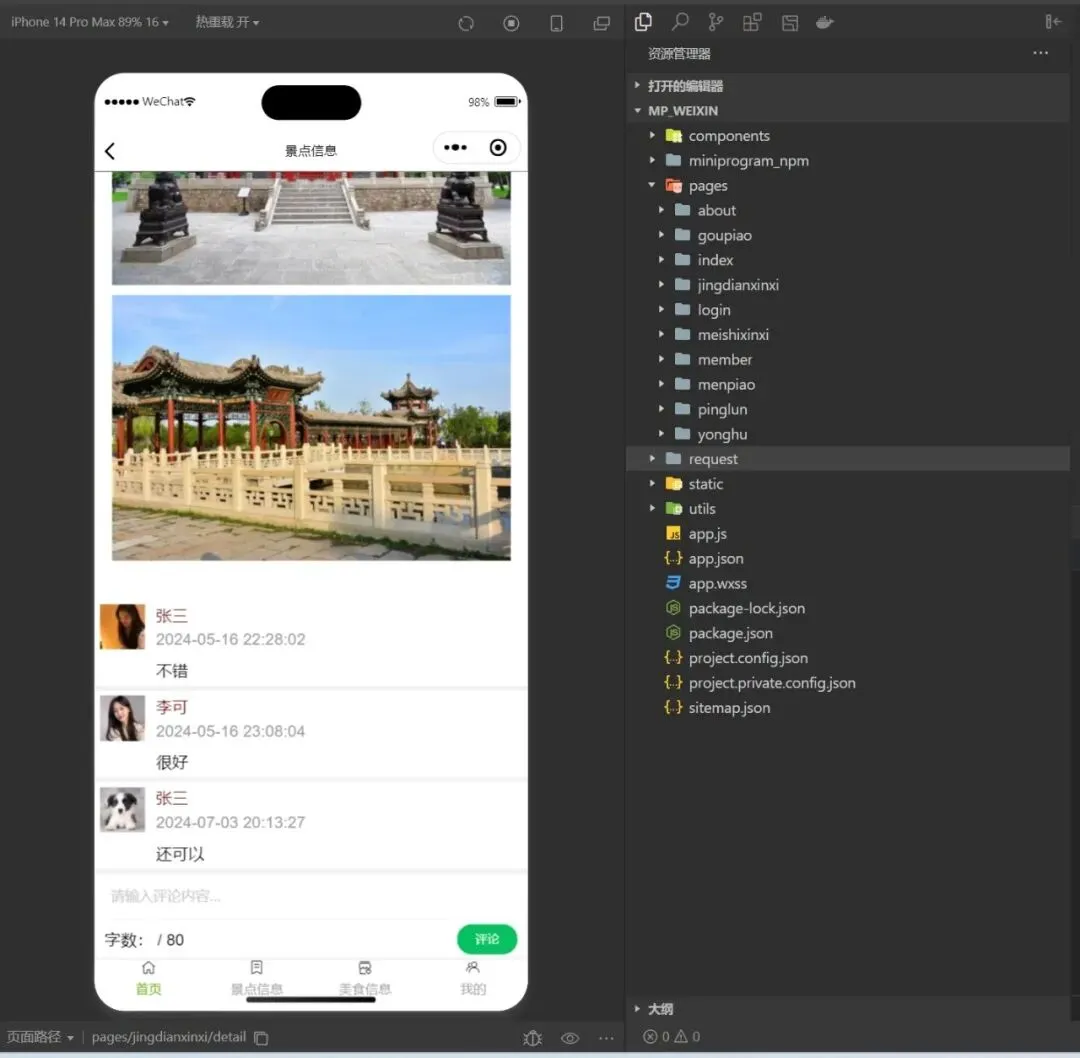 注册、登录、景点信息、门票预订、评论、美食信息、个人信息