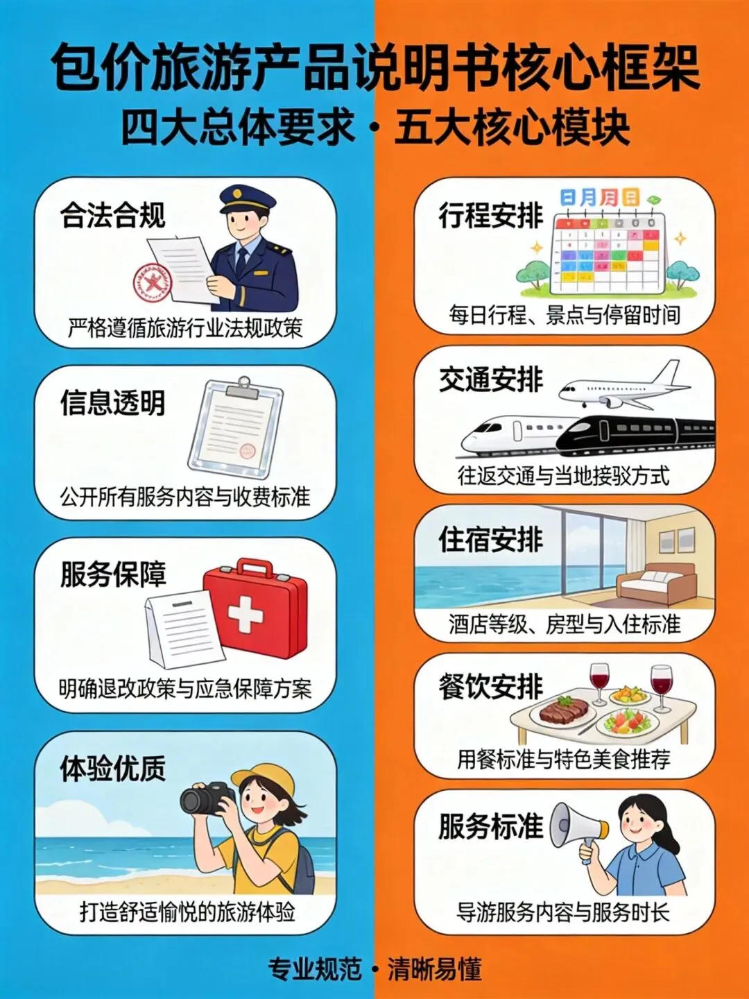 各位文旅圈的小伙伴们,2026年了,是时候重视产品说明书的标准化了!随着《包价旅游产品说明书编制规范》的深入实施,以及文旅行业高质量发展的推进,一份规范、专业的产品说明书已经成为企业核心竞争力的重要组成部分。不要让一份糟糕的说明书毁了你的好产品。