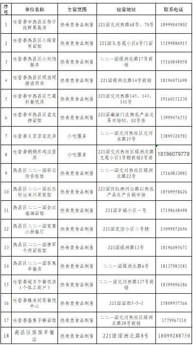 赏花游玩之余,别忘了用美食犒劳自己。二二一团团部及周边藏着不少地道风味—从清晨的一碗暖心早餐,到深夜的卤味小食;从地道的新疆拌面、川湘菜肴,到孩子们最爱的炸鸡汉堡。以下为团部周边经摸排的餐饮单位信息,您可根据口味和位置自由选择🍜