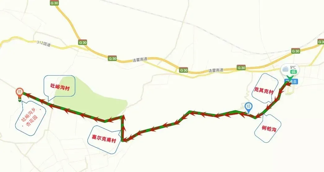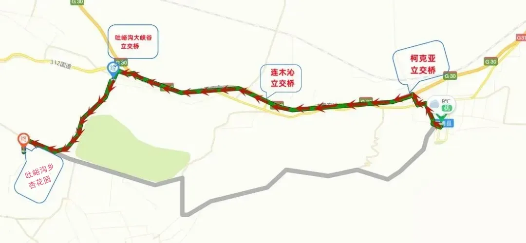 方案2:G30高速——鄯善县城——柯克亚立交桥——吐峪沟大峡谷立交桥——县道X065线(吐峪沟大峡谷路段)——吐峪沟乡杏花园。