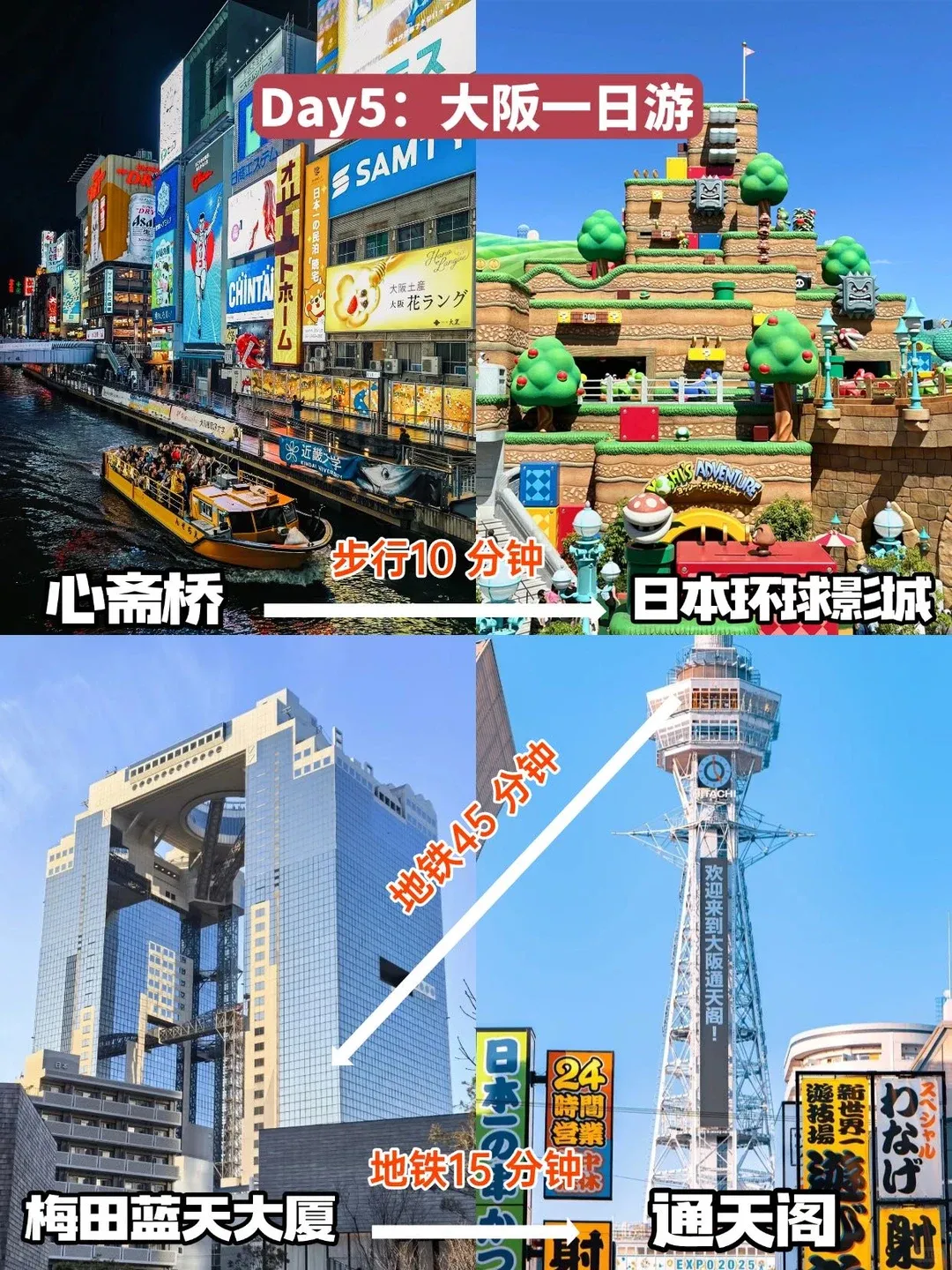 📍大阪 :心斋桥、日本环球影城、梅田蓝天大厦、通天阁