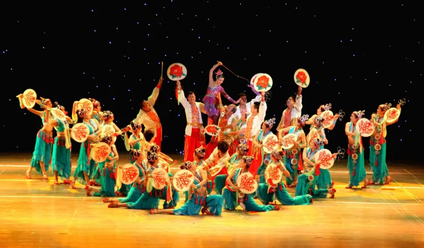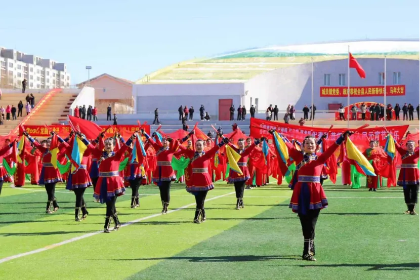 边塞文化与民俗歌舞交融,粗犷豪放、热烈喜庆,红绸飞舞气势恢宏。