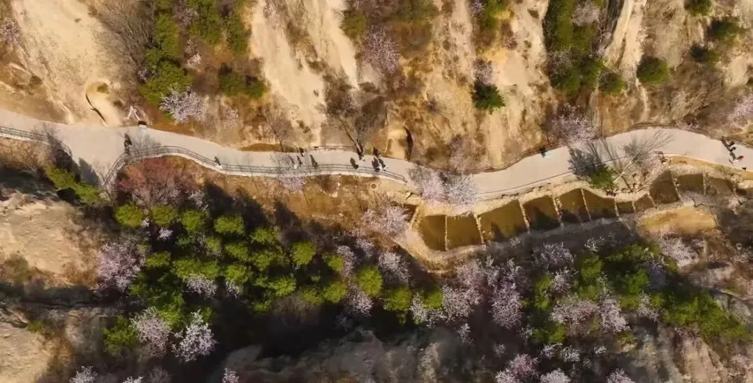 1️⃣ 北城花海北二楼和北四楼是俯拍花海的绝佳地点,特别是北四楼下城通道,两侧杏林密集,被誉为“最美下城通道”。北线缆车:乘坐缆车凌空赏花,直达北八楼,与长城花海同框,拍出刷爆朋友圈的美照!