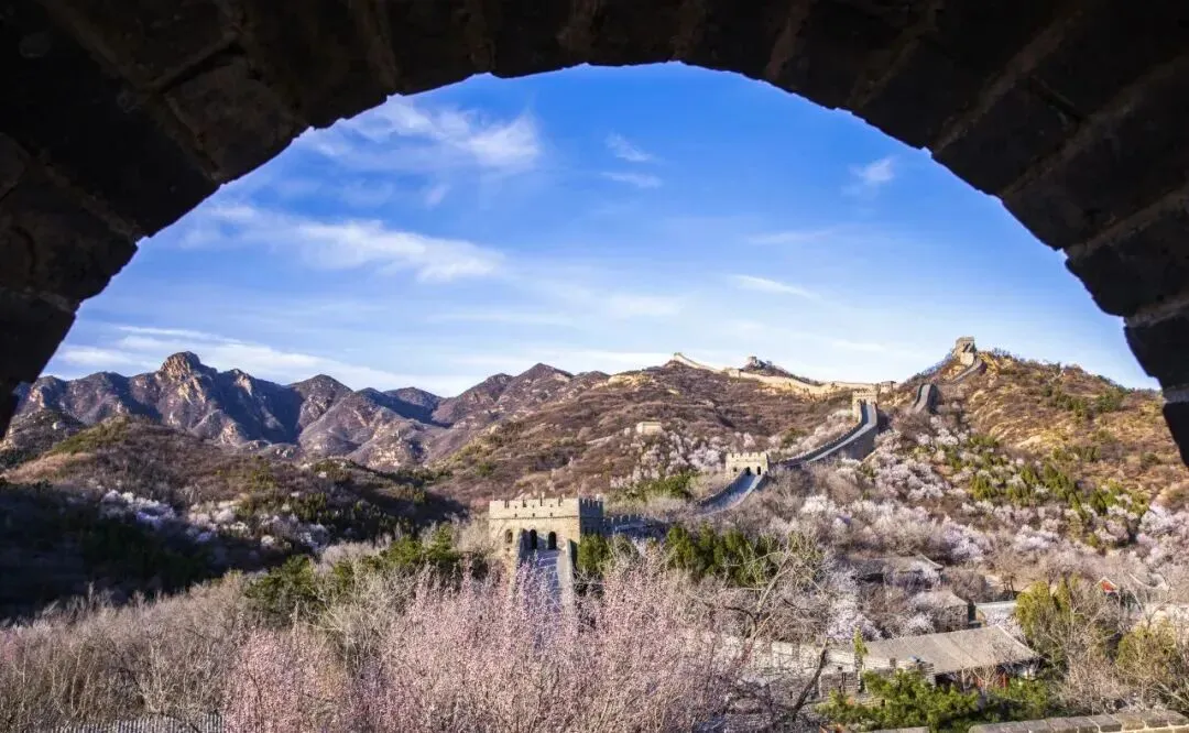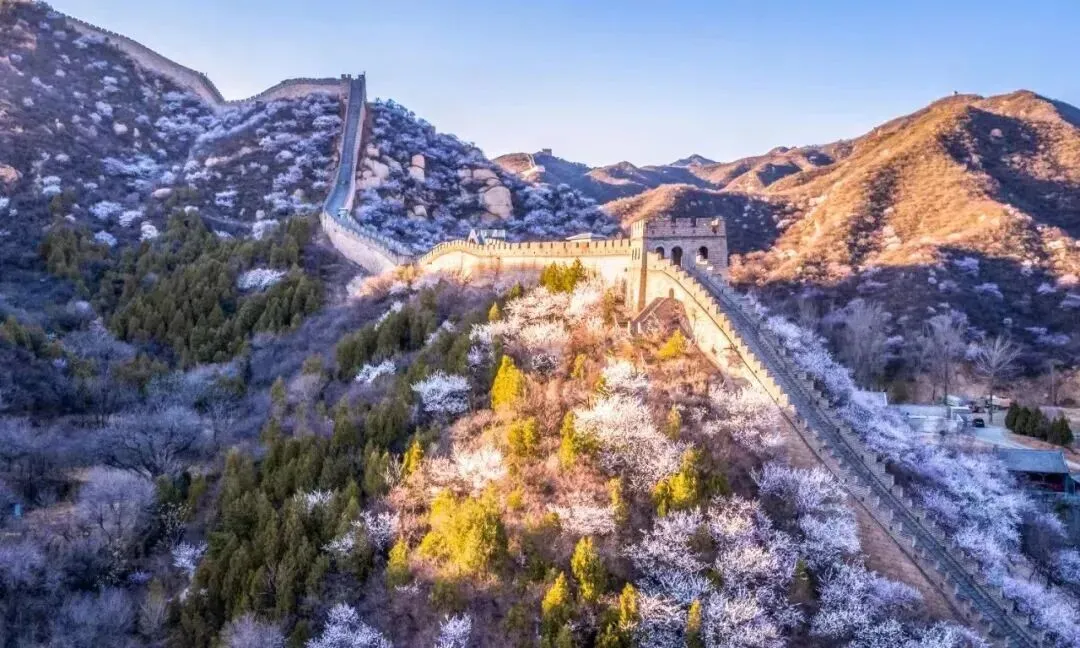 从S2线八达岭站下车移步巍峨长城,春日的长城少了冬日的肃穆,多了几分生机。在八达岭长城景区,山上的杏花、桃花即将悄然绽放,粉白花瓣将缀满蜿蜒巨龙,沧桑古墙与柔美花海相映,既有历史的厚重,又有春日的灵动。