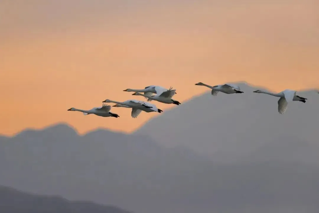 远方的“白色精灵”如约而至,天鹅回来了!它们舒展洁白羽翼,在渐融的湖面优雅游弋、翩跹起舞,宛若为湿地奏响一曲灵动的天鹅圆舞曲。