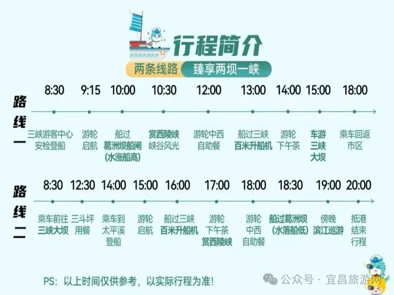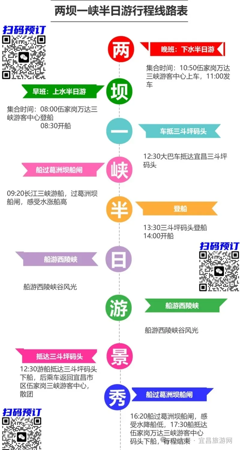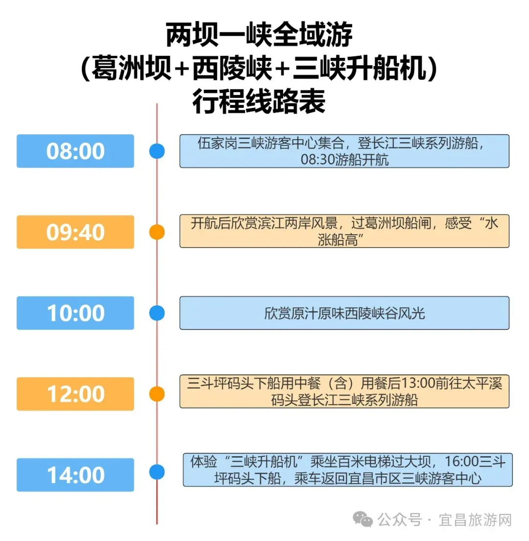 1、如果只有一天时间,想体验三峡升船机和葛洲坝,西陵峡,就只能选择两坝一峡全域一日游,但没法游览三峡大坝(坛子岭、185平台、截流纪念园)