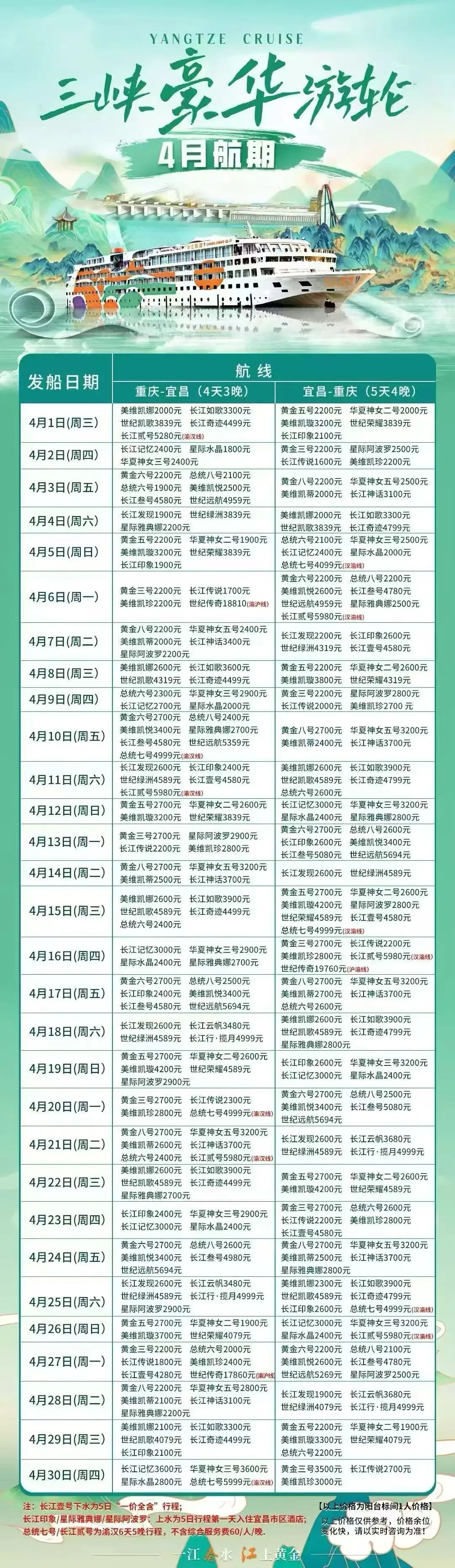 和谐号游轮专船运行,载客量有限,先到先到,688元/人起(非黄金周价格,此价格可能因船方调价,随时波动,具体详询客服0717-6521606;18986789364)