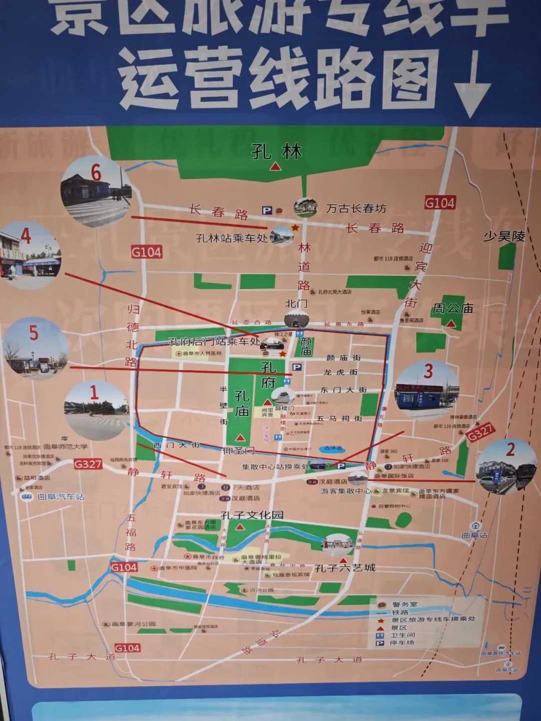 到达:距曲阜站5公里更近,但是K字头为主的车,曲阜东远一点,11公里,公交耗时久,建议打的,可以先去免费的孔子博物馆参观后前往