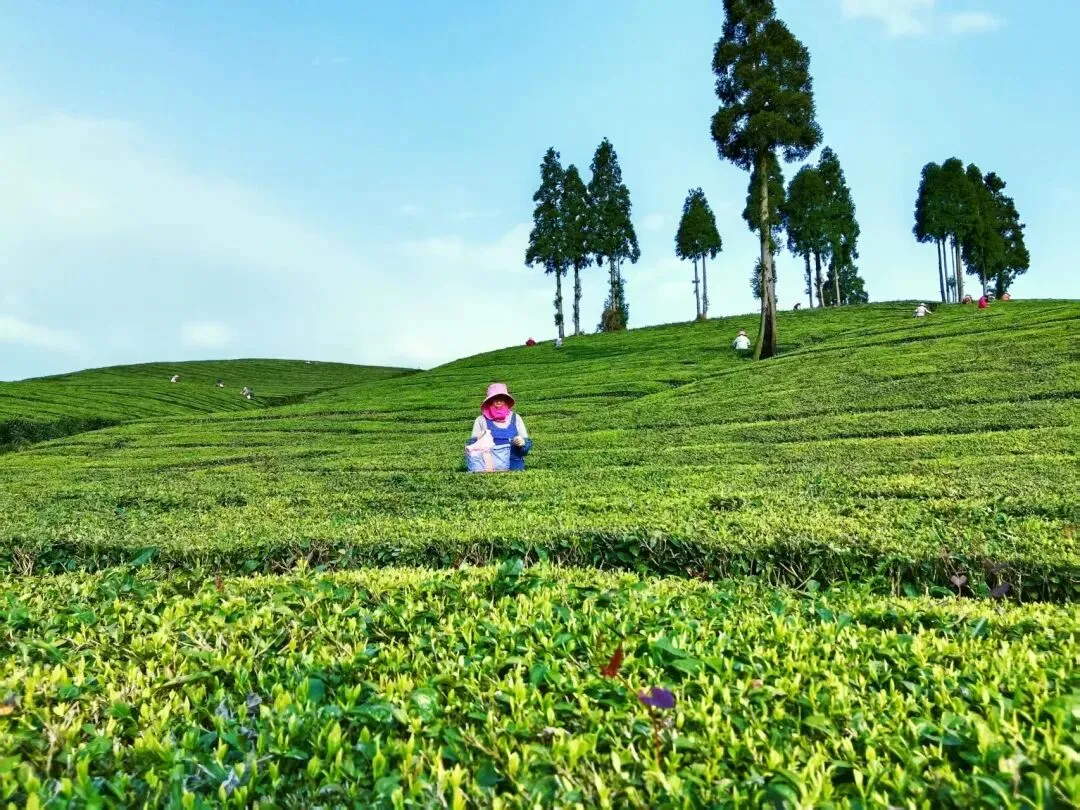 走累了,便寻一处茶垄间的空地坐下。四周是安静的绿,风过时,满坡的茶叶沙沙作响,像在说悄悄话。什么都可以想,什么都可以不想,只把自己交给这片茶海,让清冽的茶香从四面八方包裹过来。正当时,伴随着满坡的翠绿,按下快门,便可留下春天这鲜活的记忆。