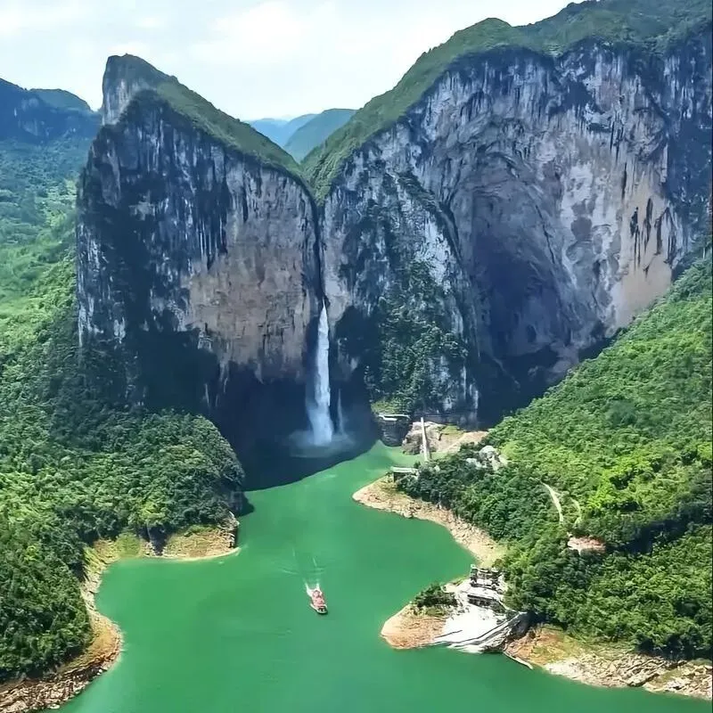 📍山崖因形似展翅蝴蝶而得名。雨季时,绝壁间一挂飞瀑奔涌而出,声如雷鸣,极为壮观。景区还有跨江玻璃桥可供体验。这里流传着廪君与盐水女神的动人传说。