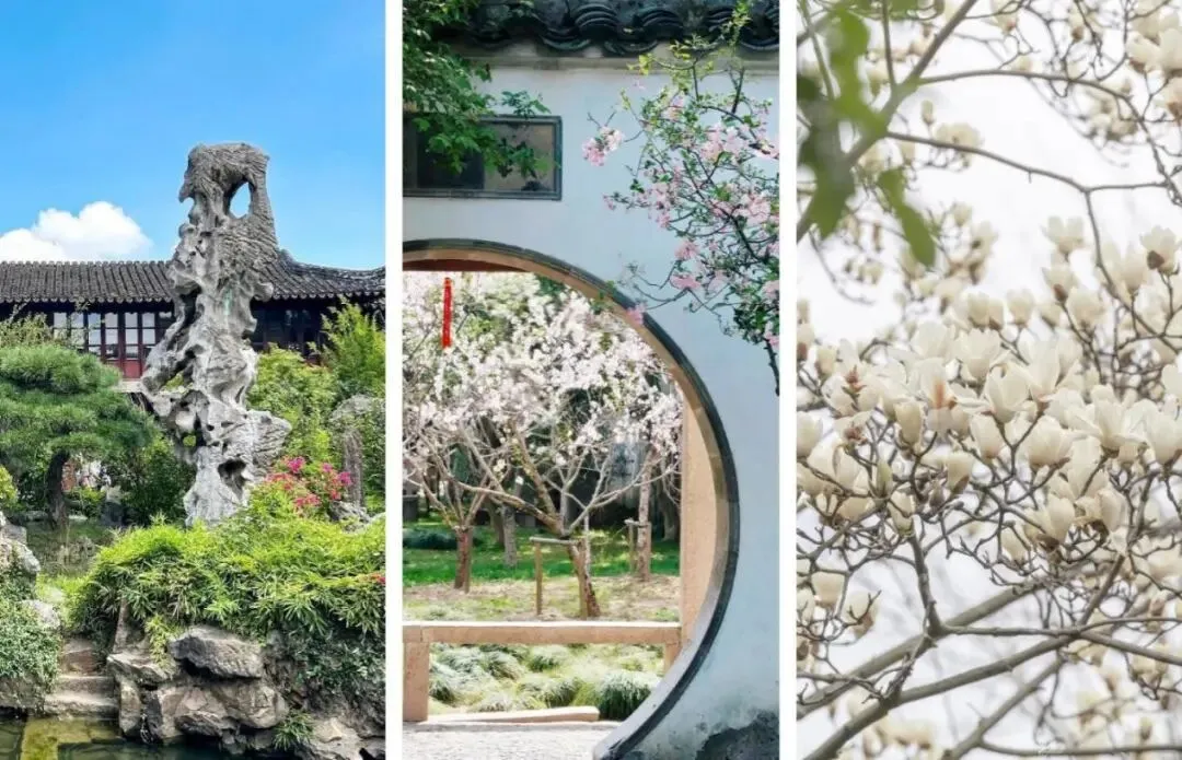 此时园内樱花盛开,海棠垂丝,与远香堂、荷风四面亭等明代建筑相映成趣。漫步曲径,感受江南园林的移步换景。