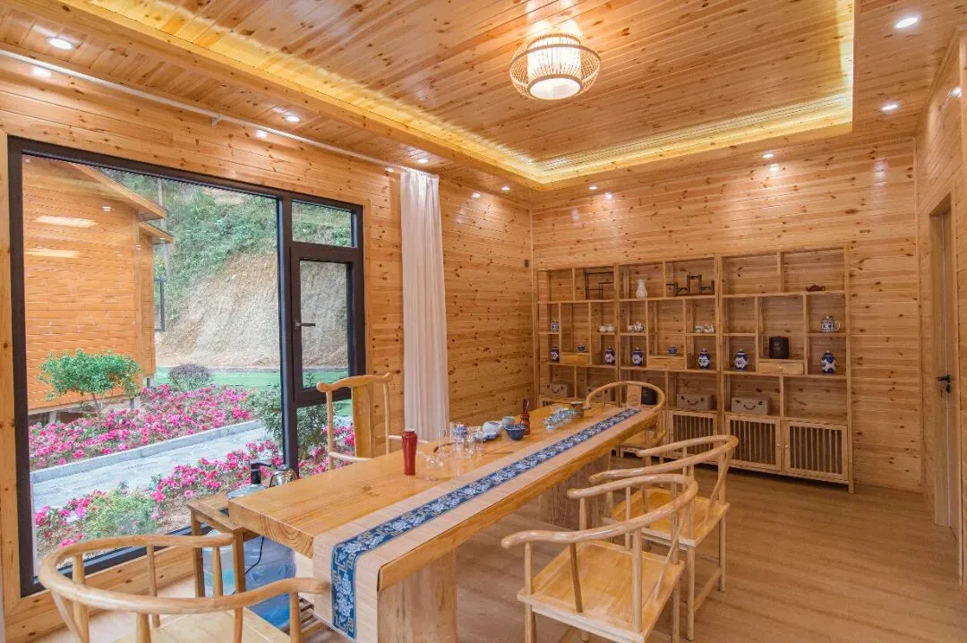 可体验采茶制茶、品鉴瑶山茶香,品尝瑶家腊肉、手工糍粑等特色美食,民宿含亲水船屋、木屋等 19 栋特色建筑,毗邻七渡瀑布,是感受瑶族风情与自然野趣的佳处。